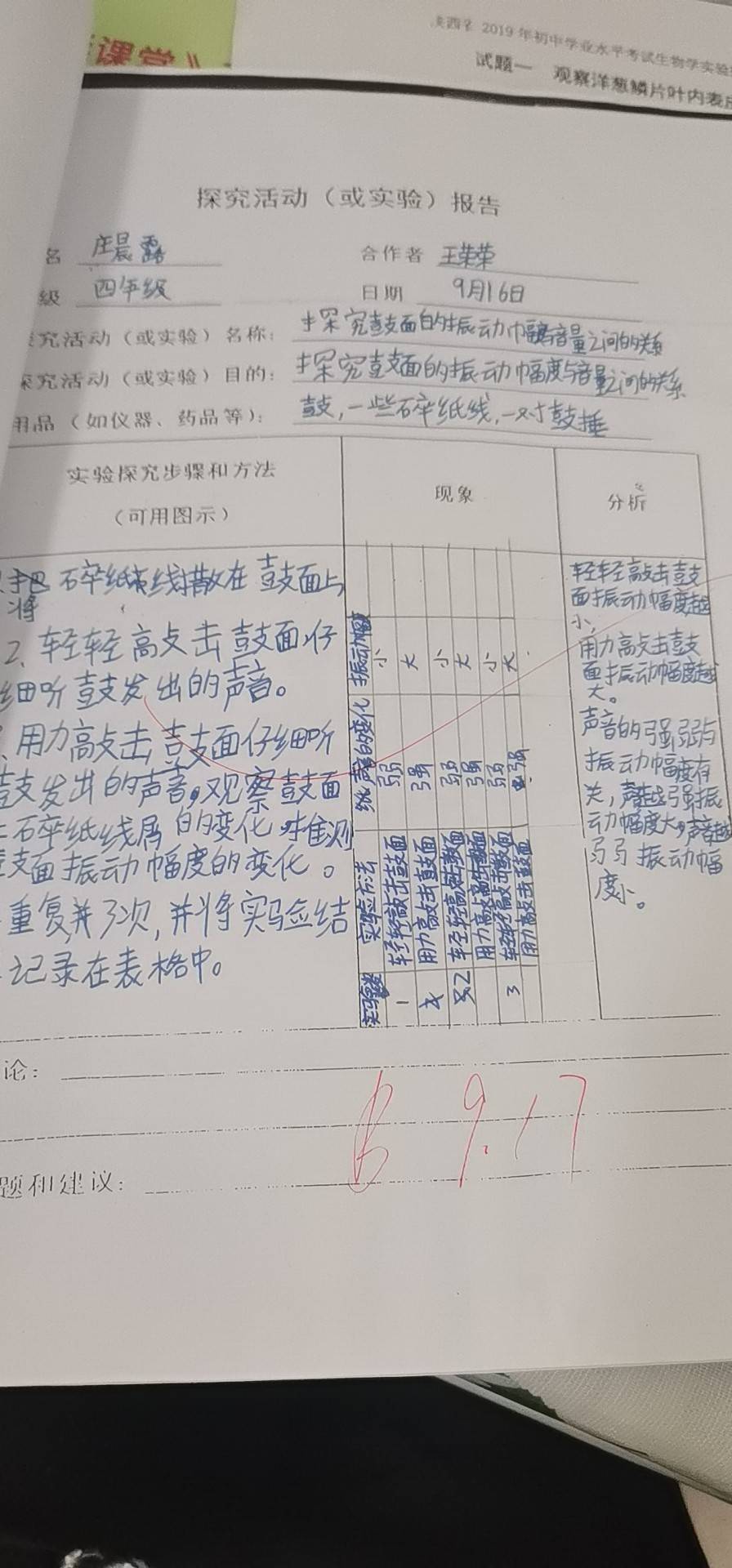 探究鼓面振动幅度和音量的关系