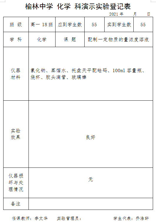 实验登记表