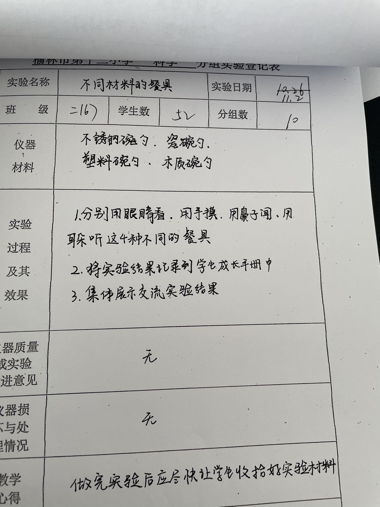 实验登记表