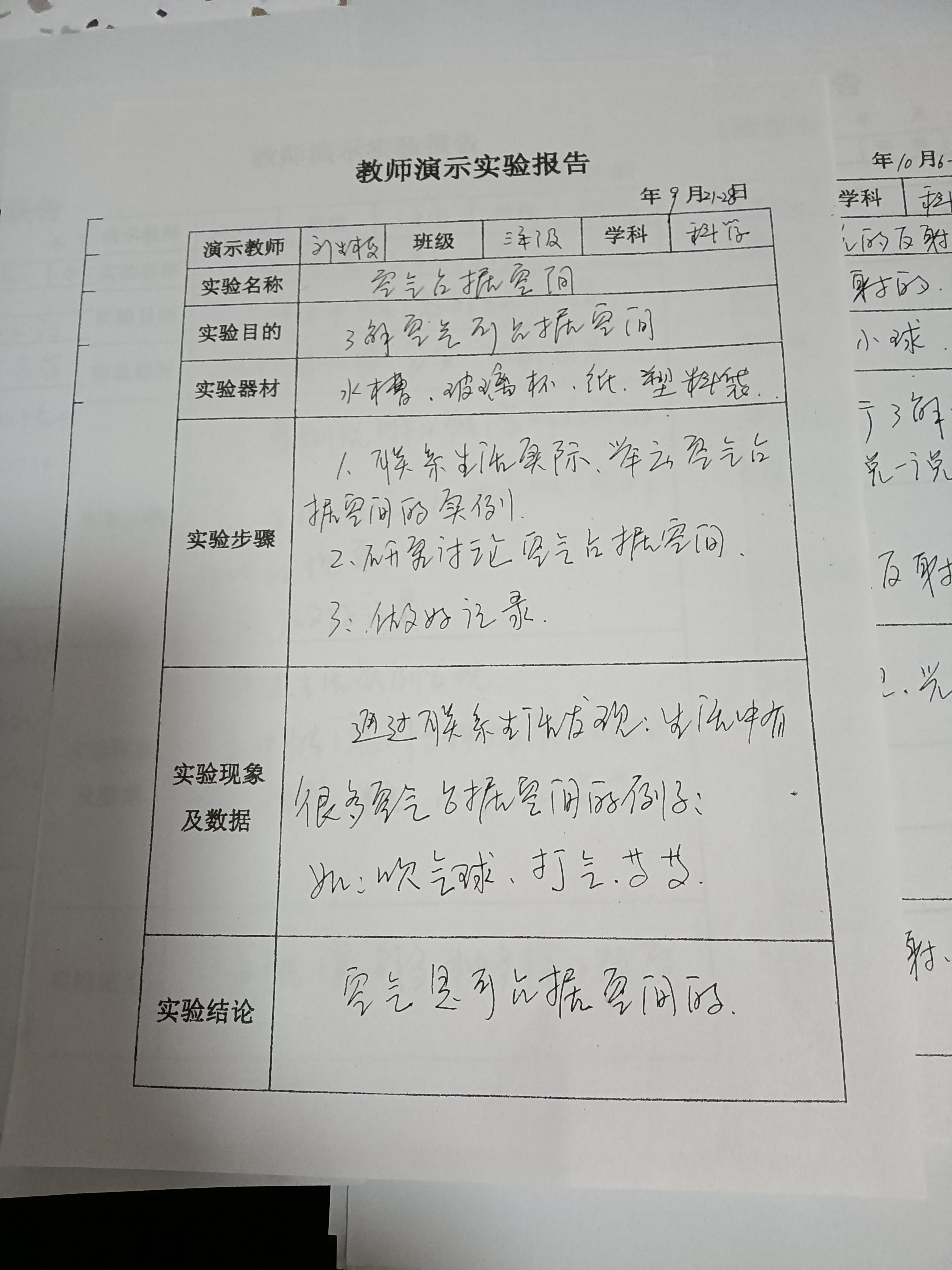 空气占据空间吗