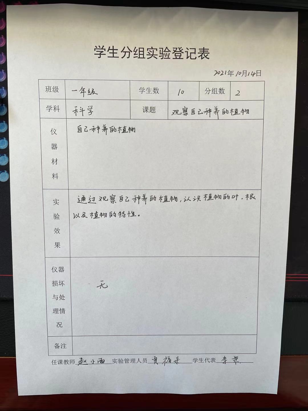 实验登记表