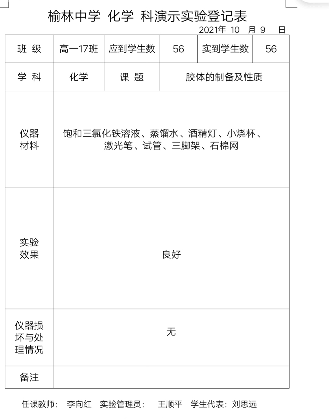 实验登记表