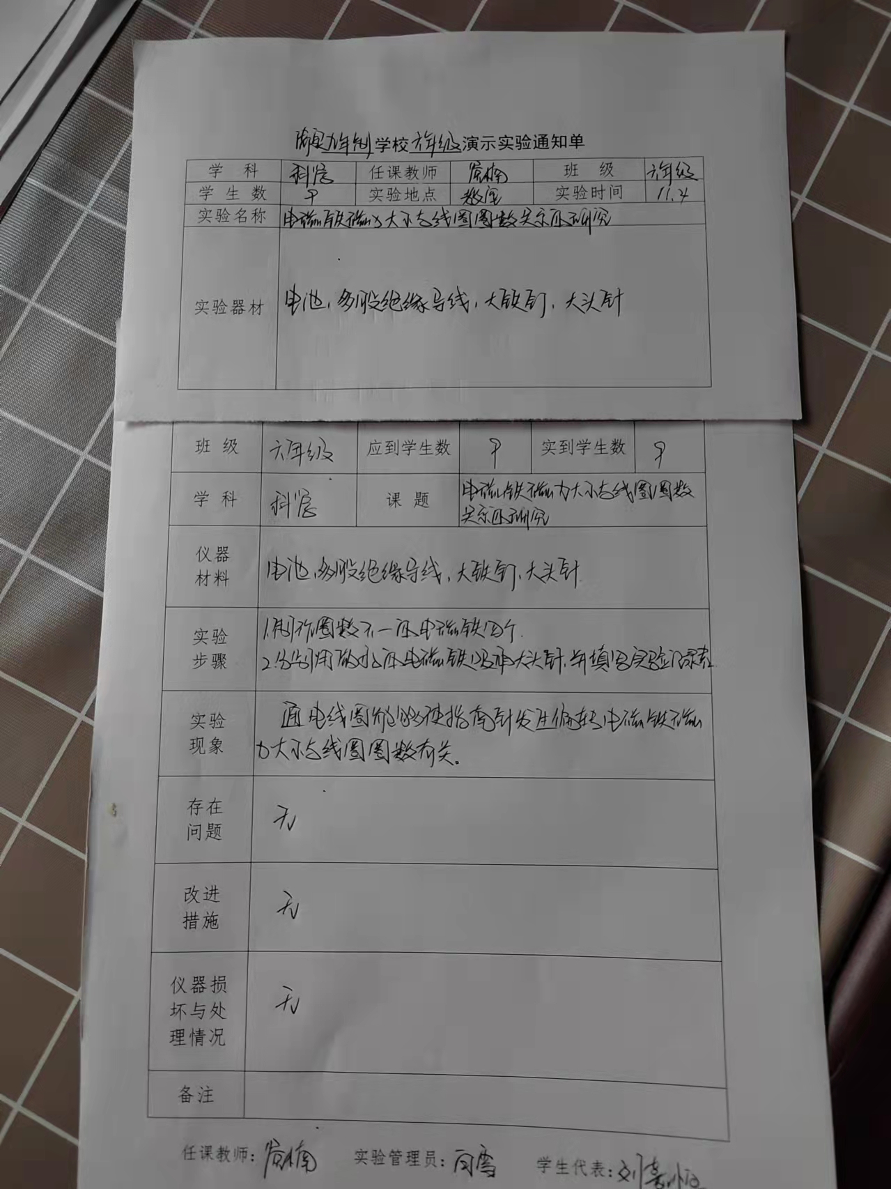 实验登记表