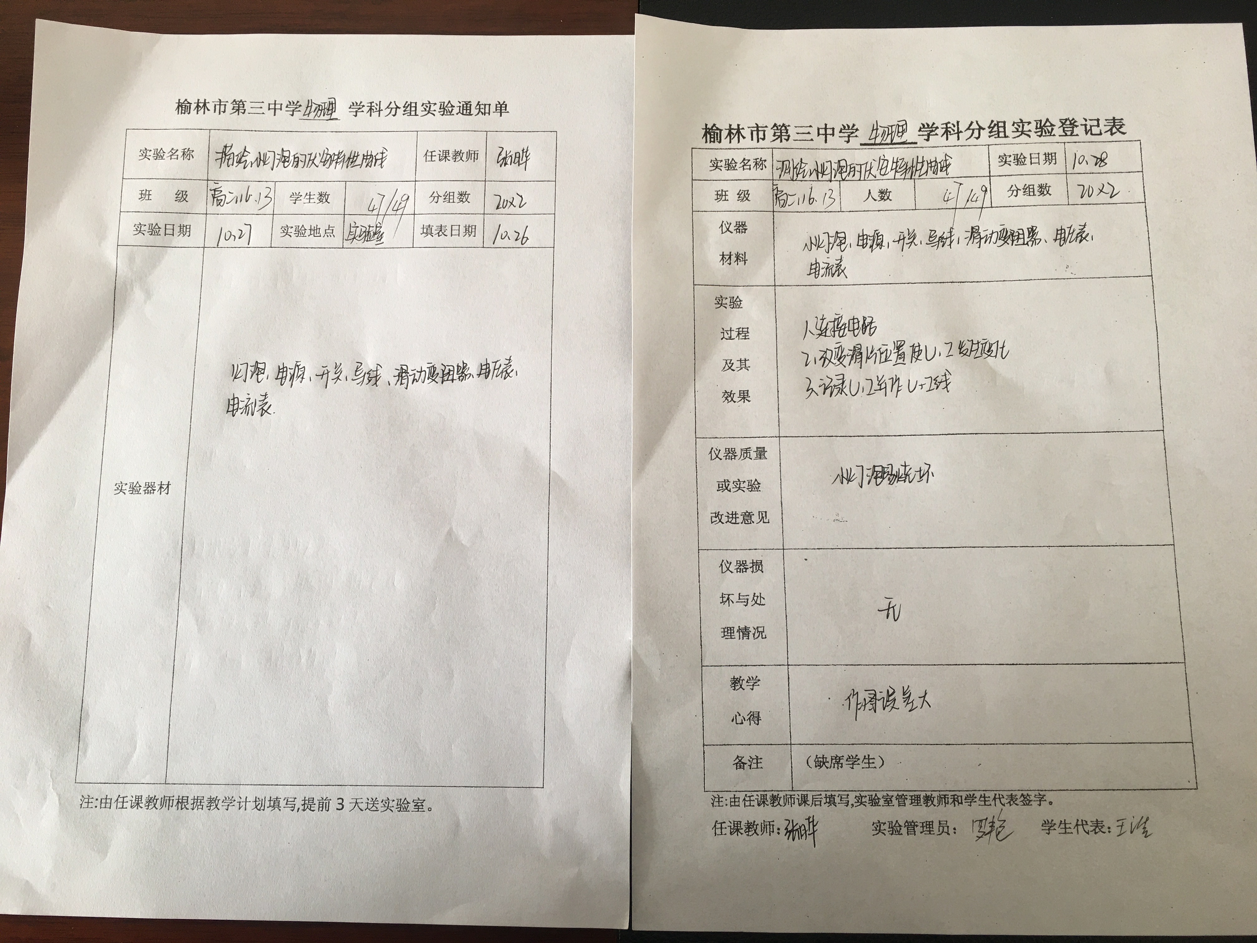 实验登记表