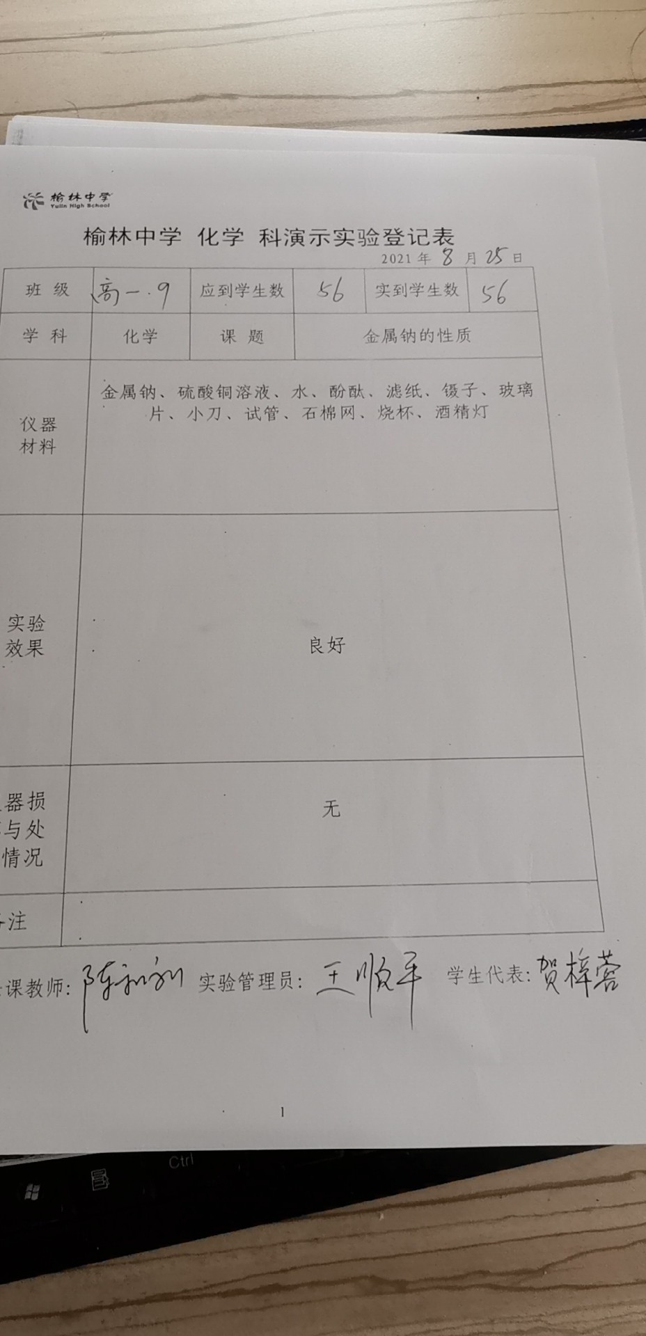 实验登记表