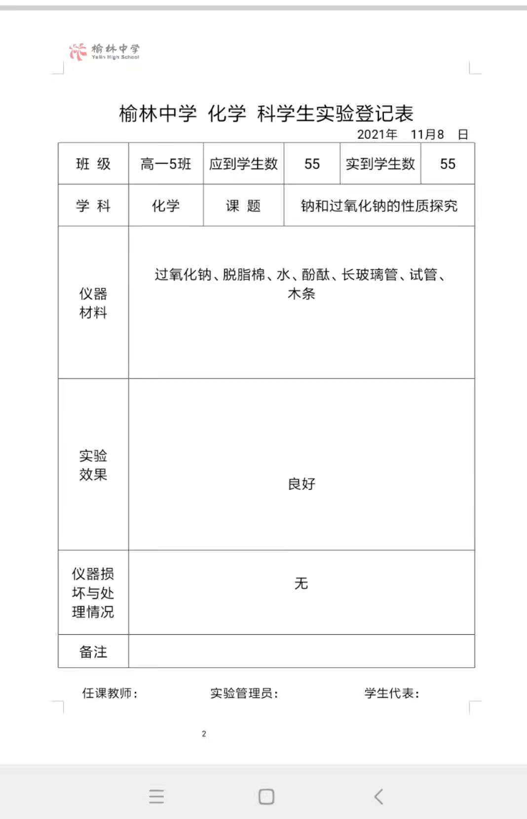 实验登记表