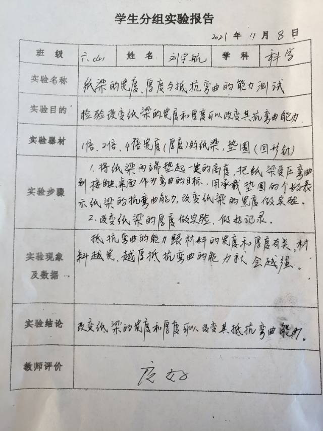 纸梁的宽度、厚度与抵抗弯曲的能力测试