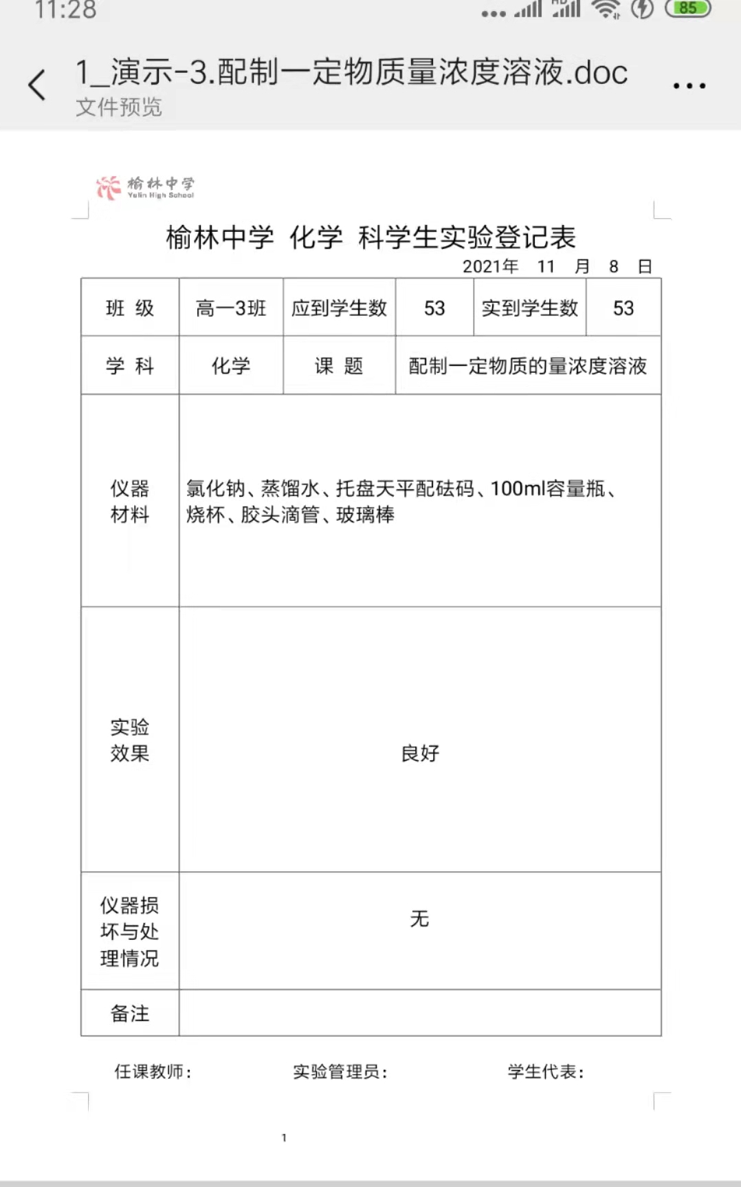 实验登记表
