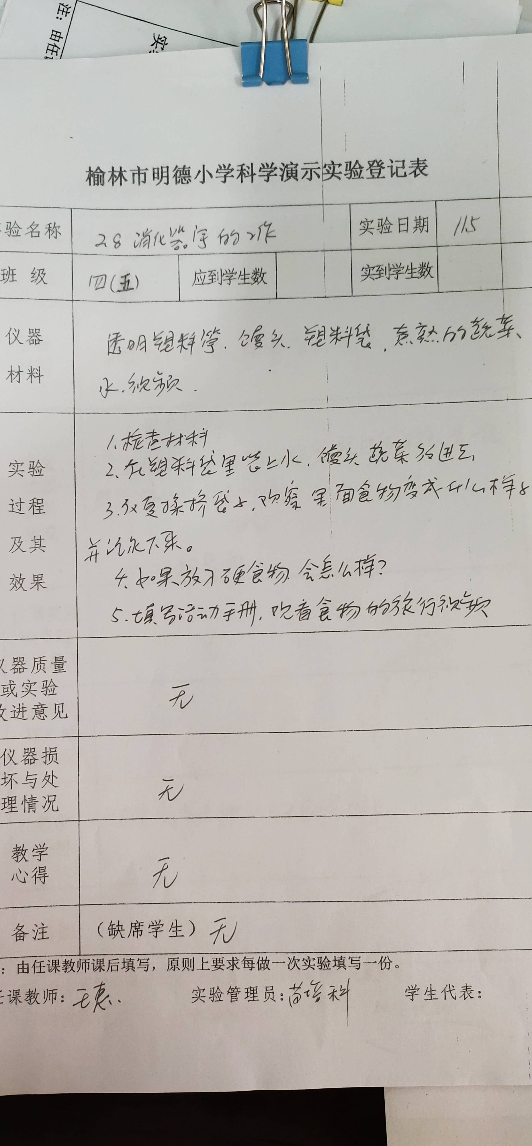 实验登记表