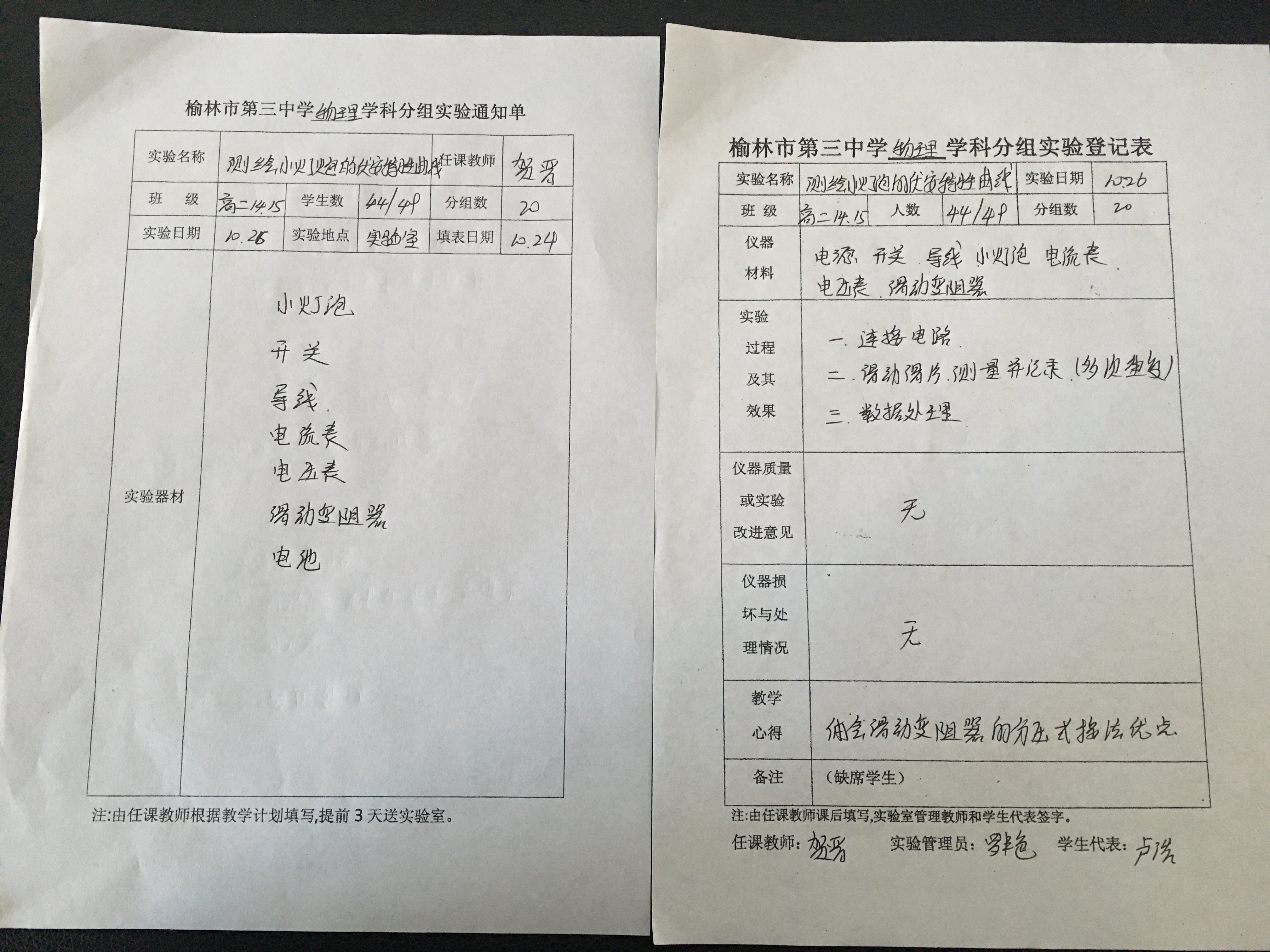 实验登记表