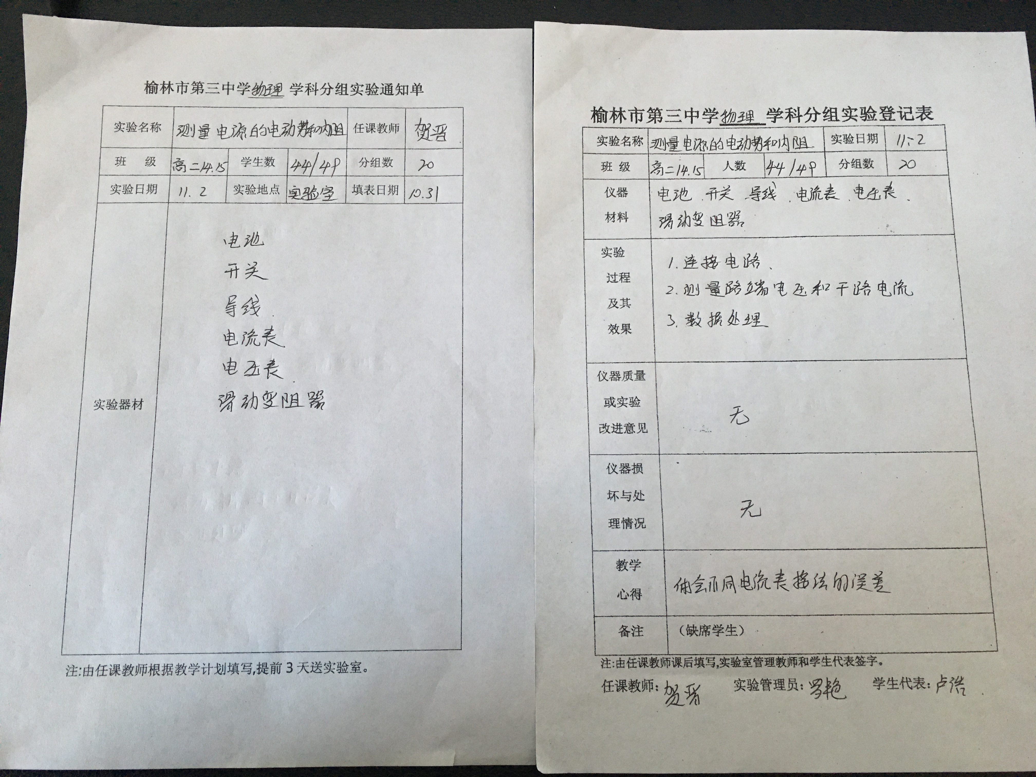 实验登记表