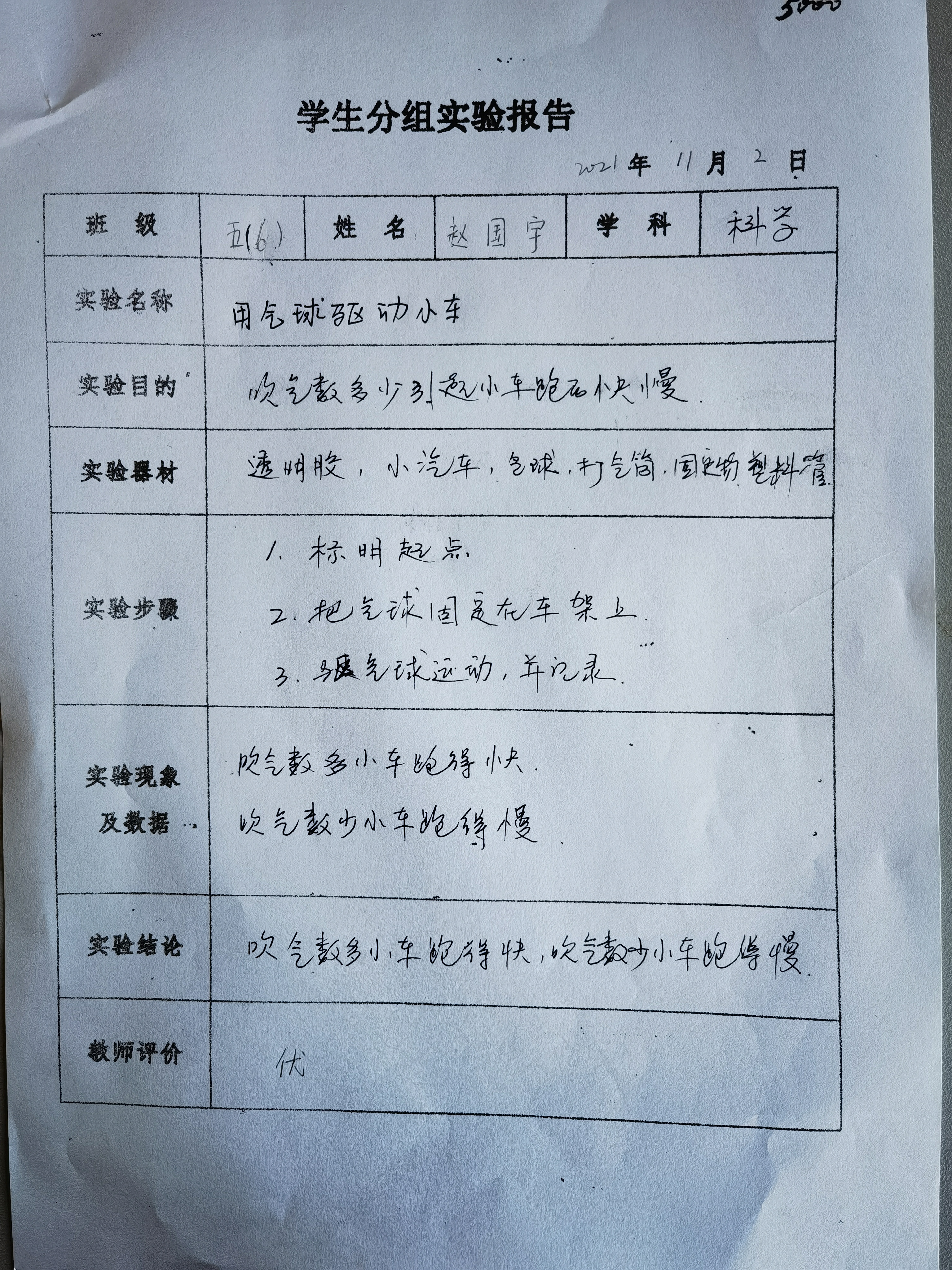 用气球驱动小车