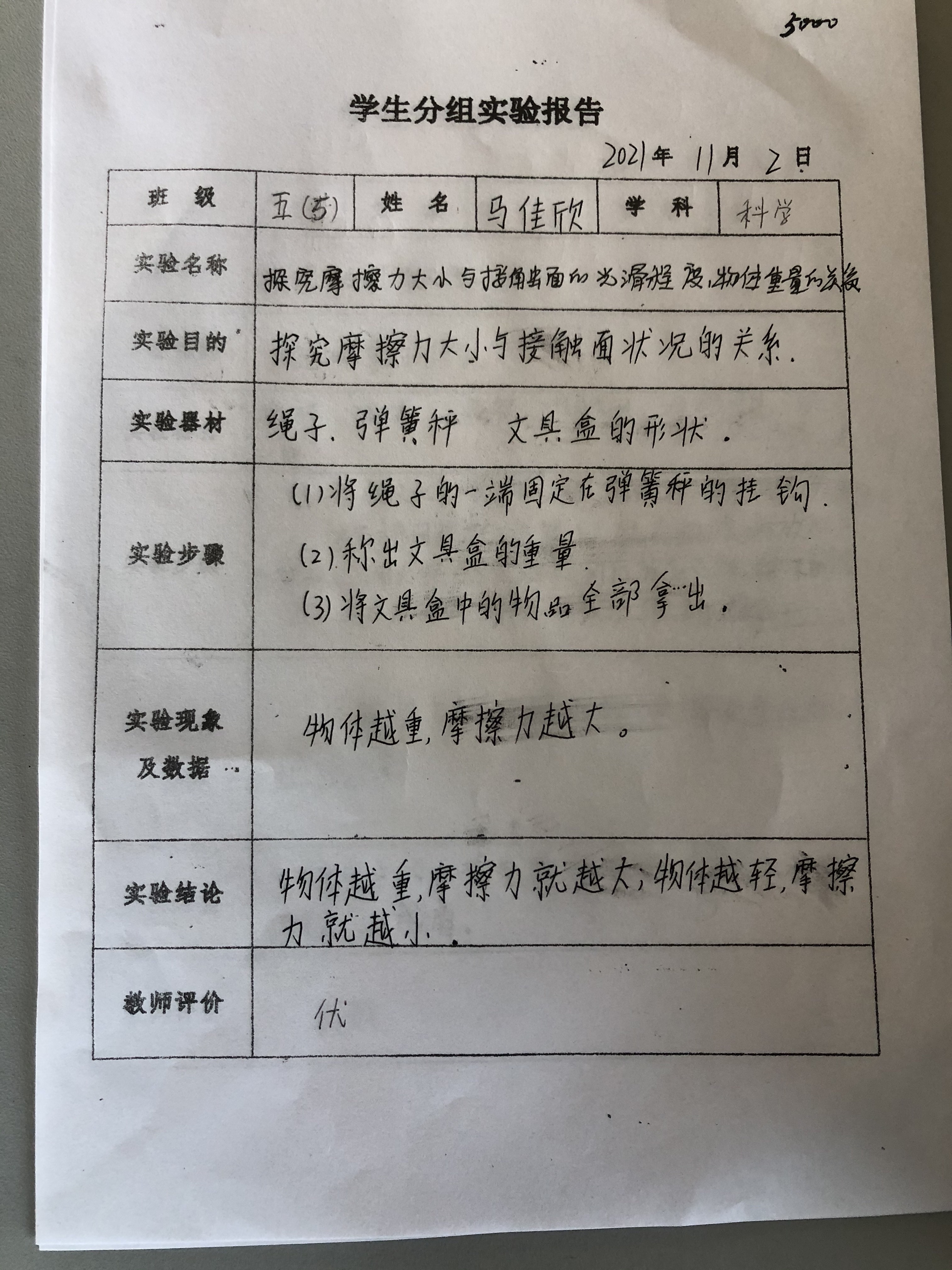 上册-第四章>第五节>4.5探究摩擦力大小与接触面的光滑程度、物体重量的关系