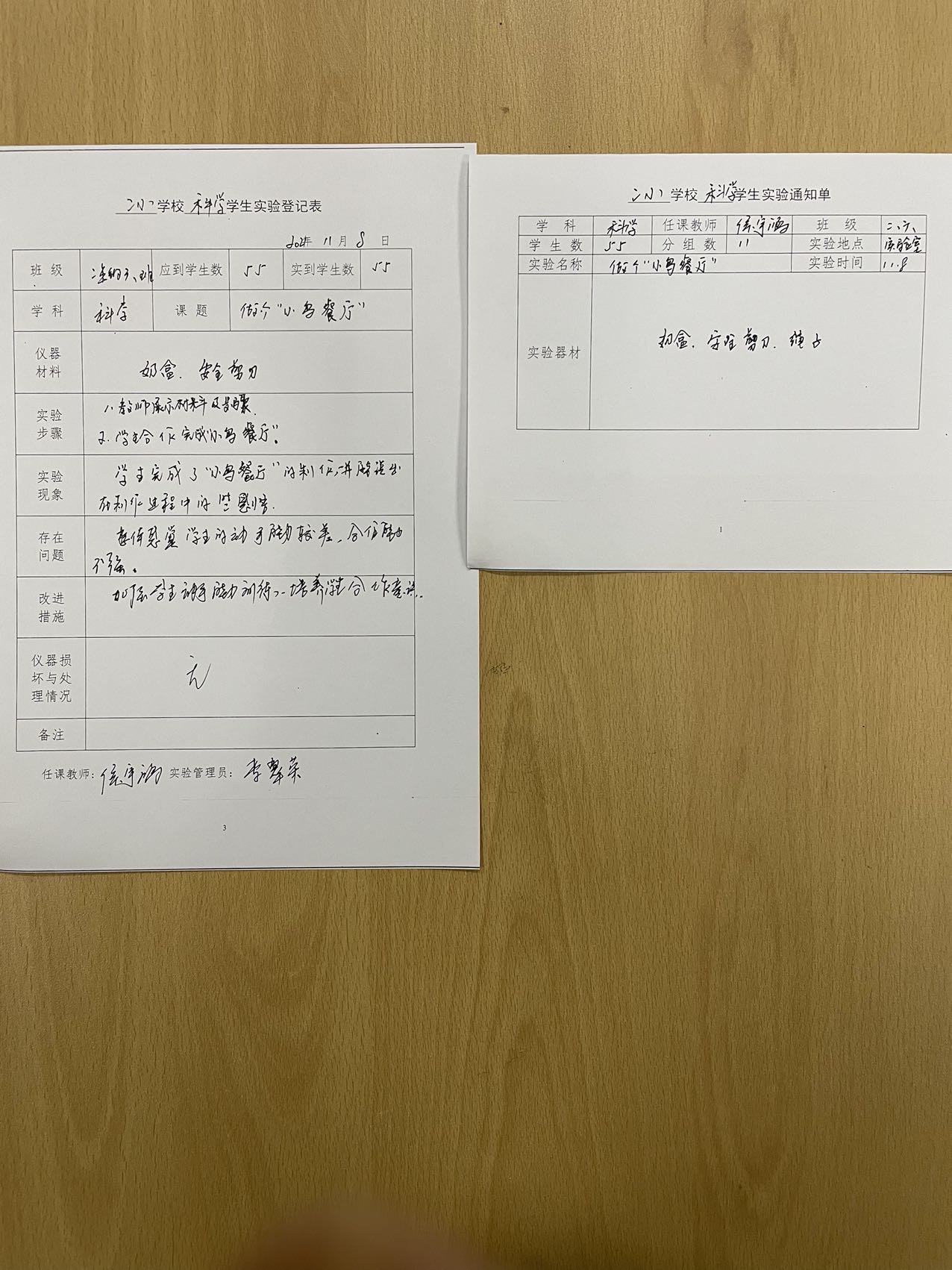 实验登记表