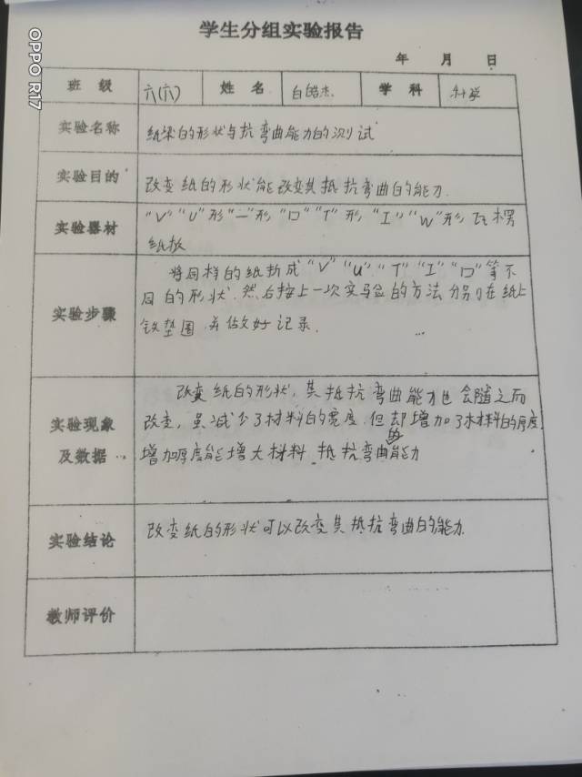 纸梁的形状与抗弯曲能力的测试