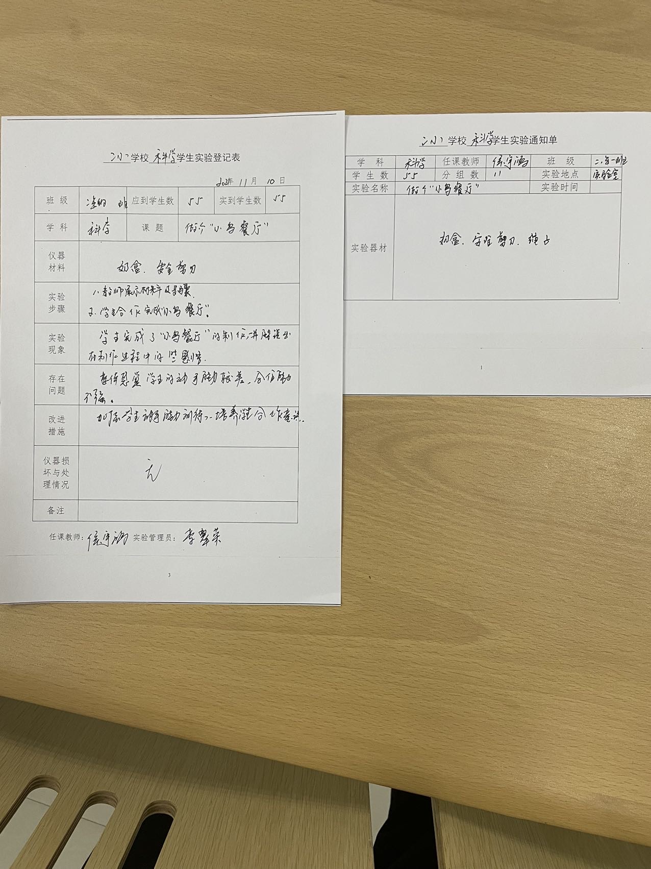 实验登记表