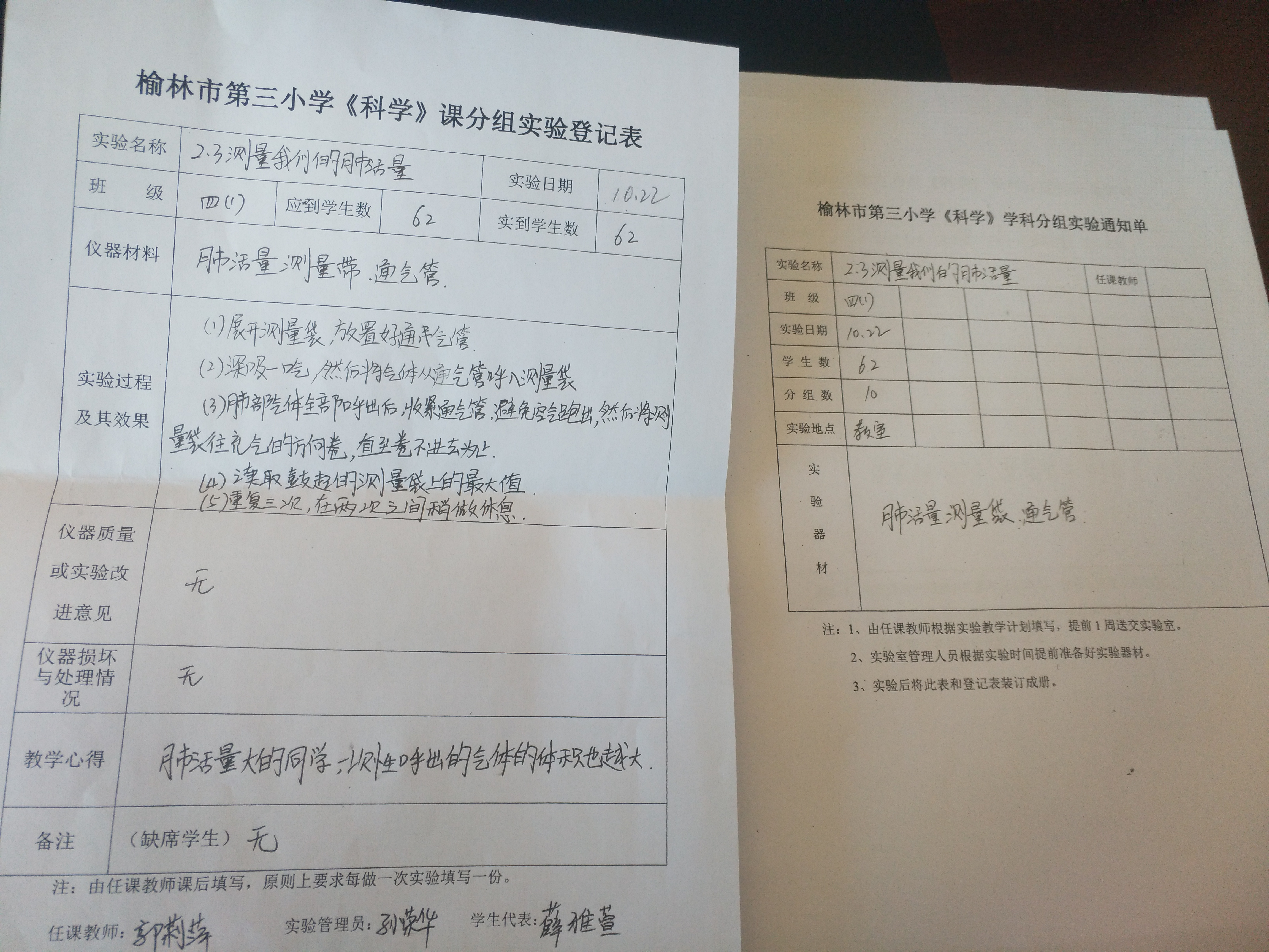 实验登记表