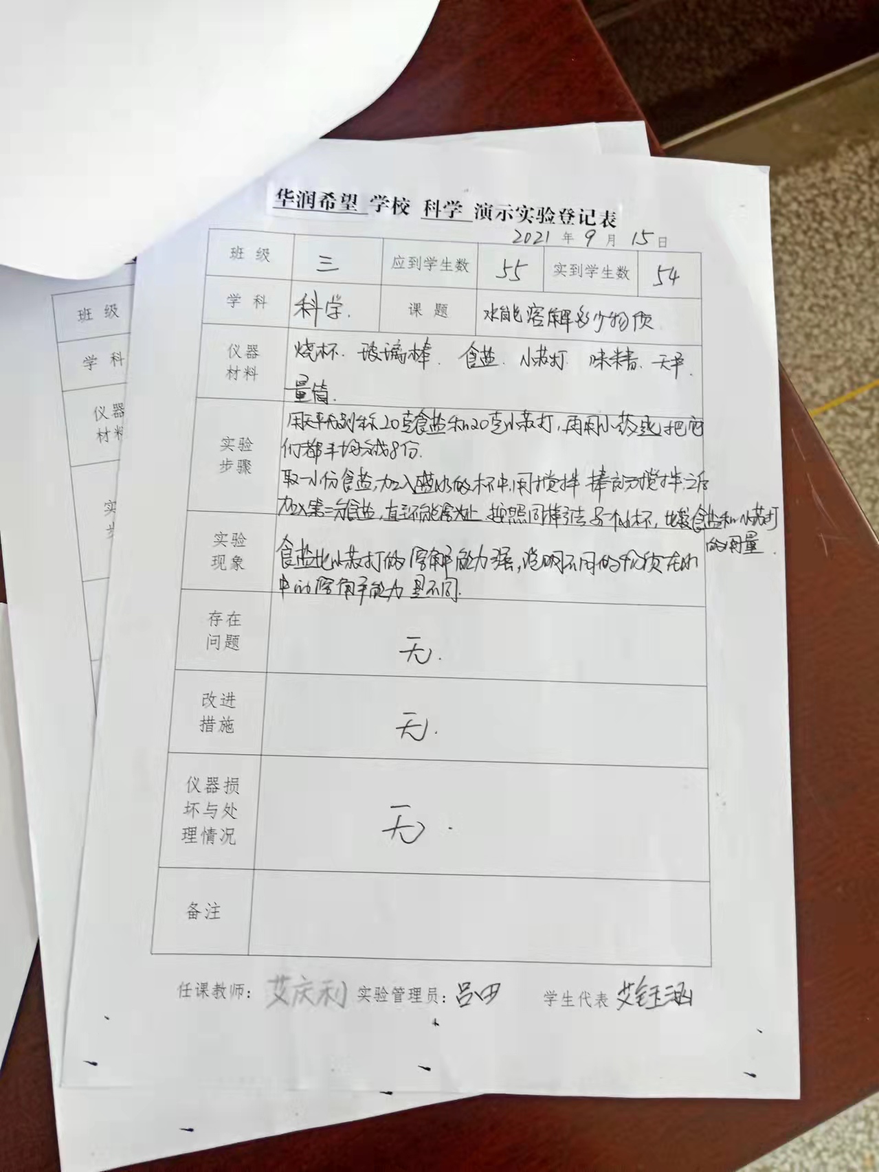 实验登记表