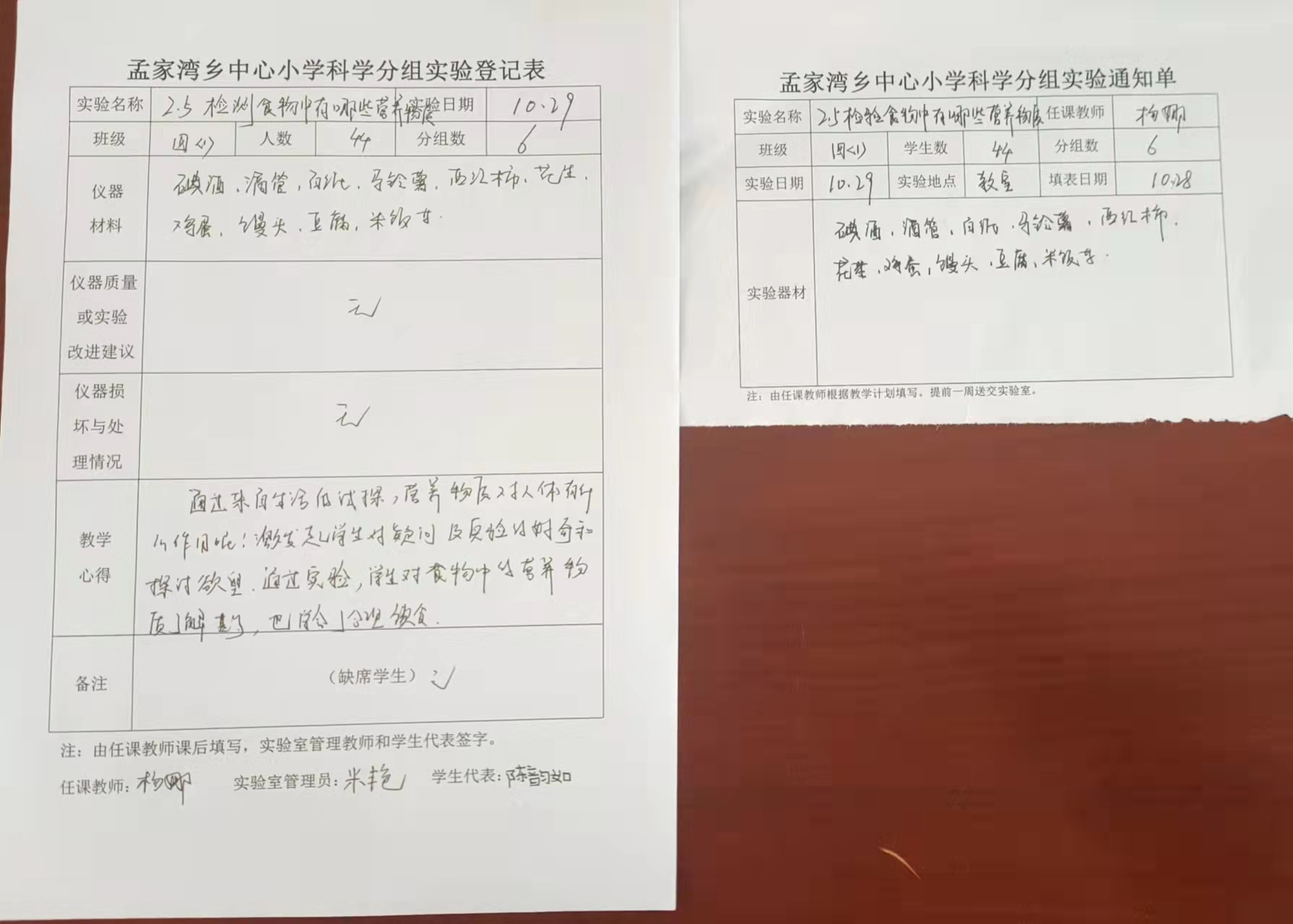 实验登记表