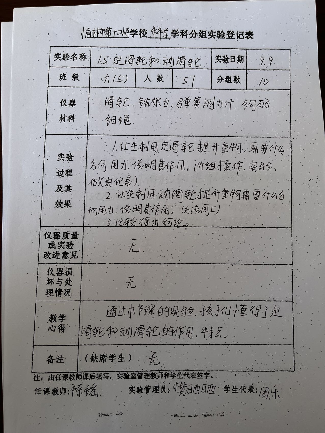 实验登记表