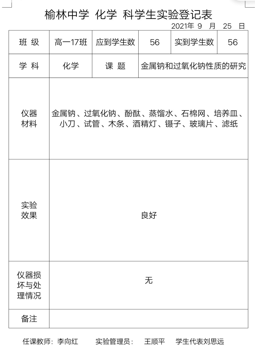 实验登记表