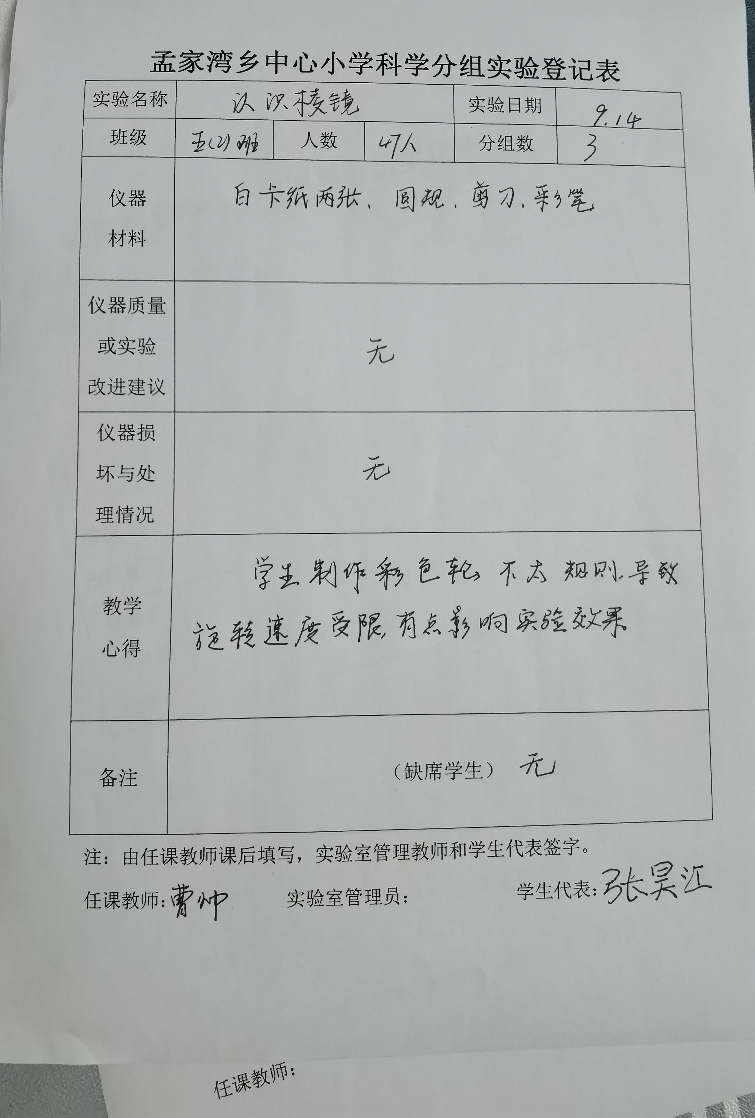 实验登记表