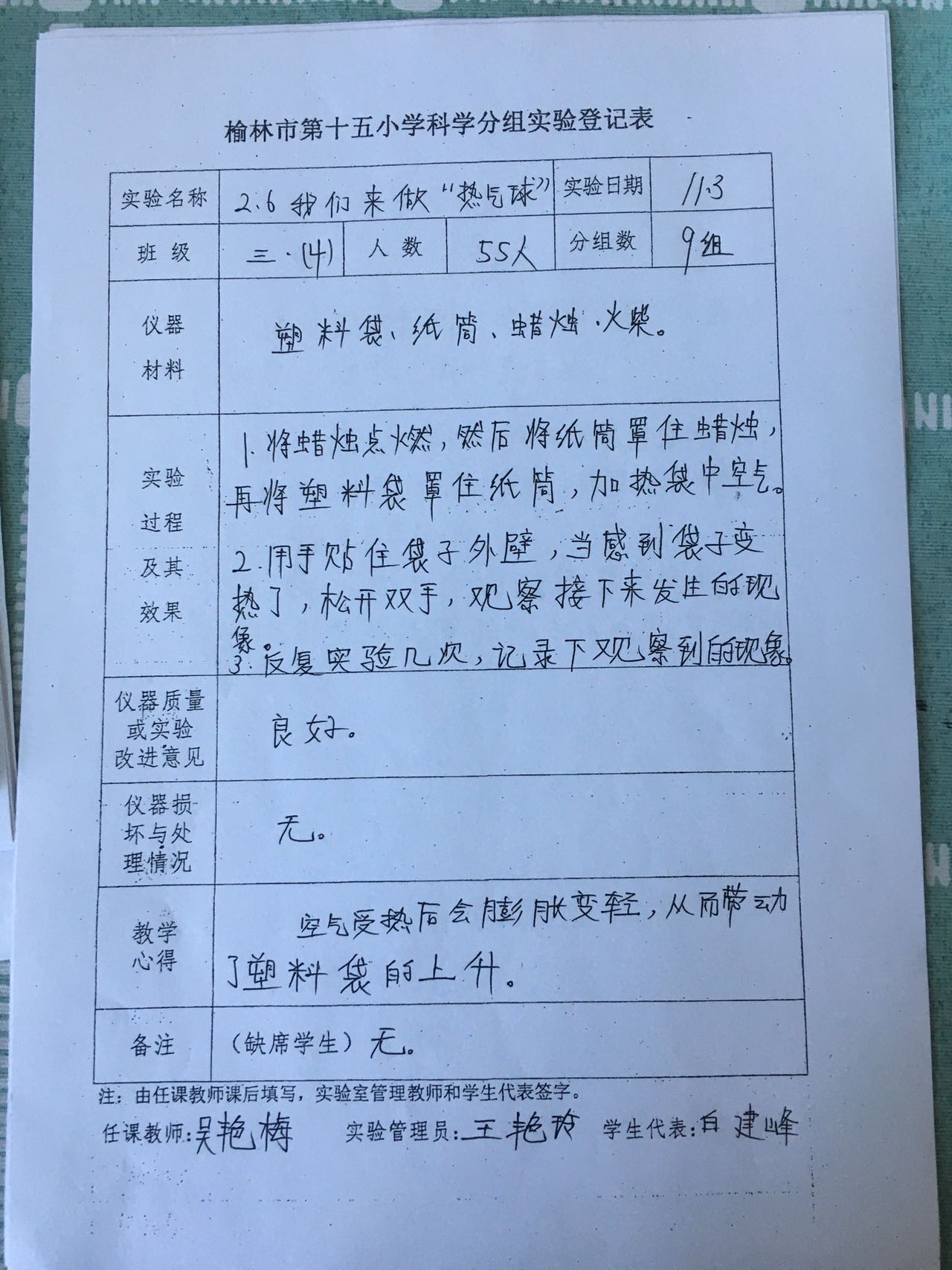 实验登记表