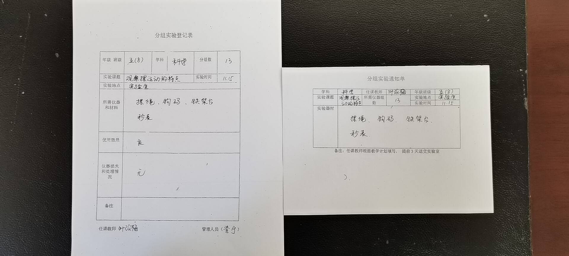 实验登记表