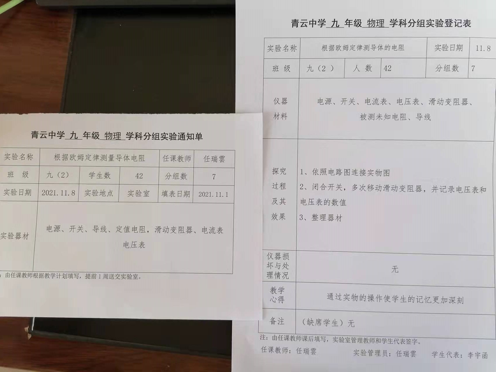 实验登记表