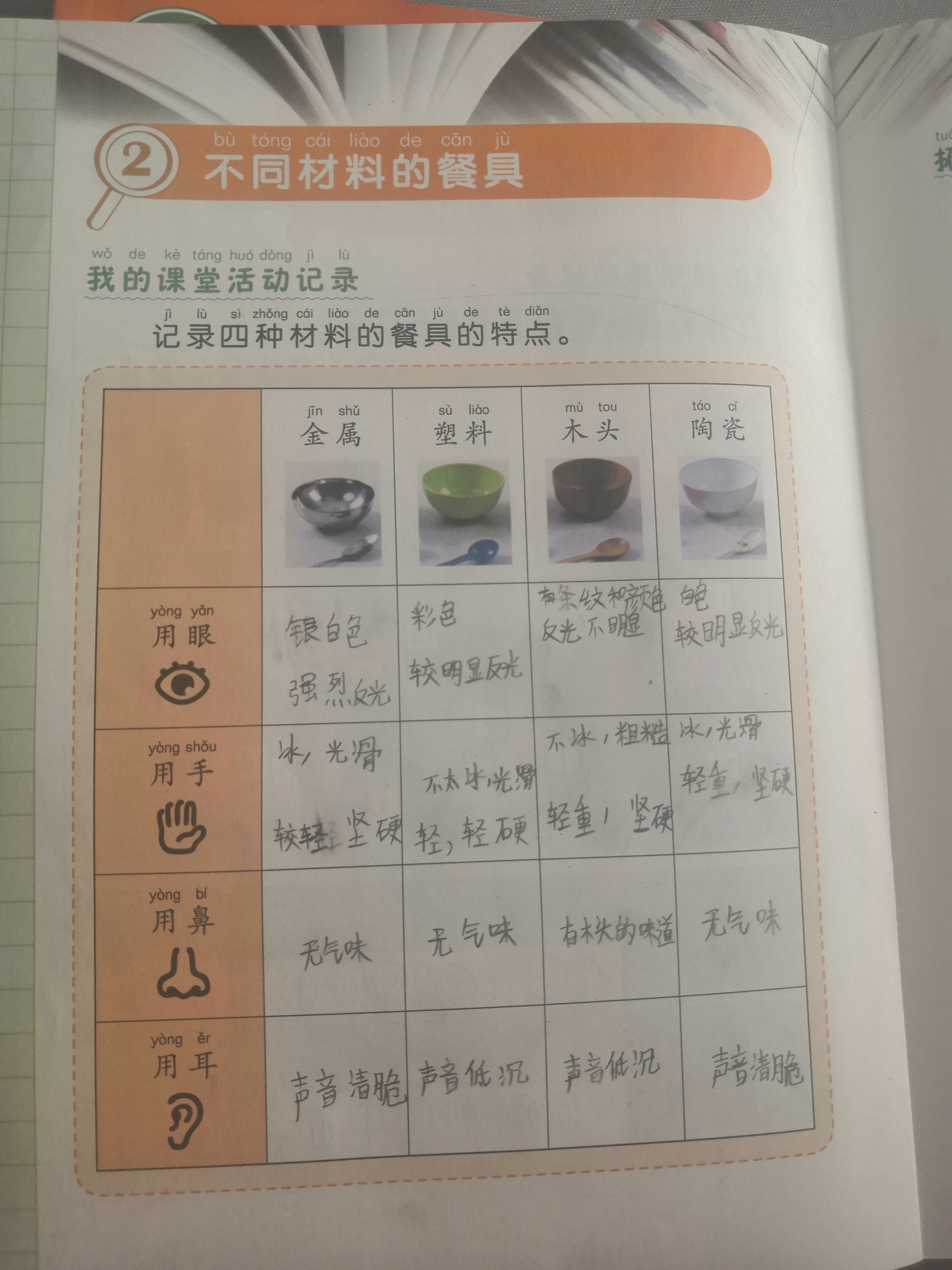 上册-第二章>第二节>不同材料的餐具