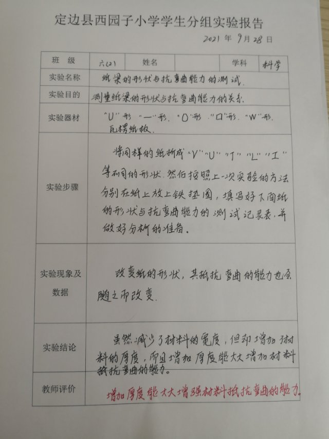 纸梁的形状与抗弯曲能力的测试
