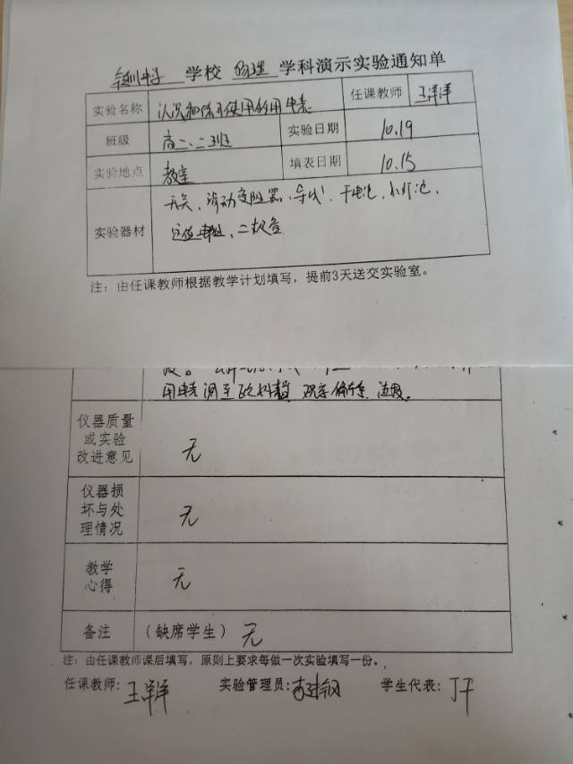 实验登记表