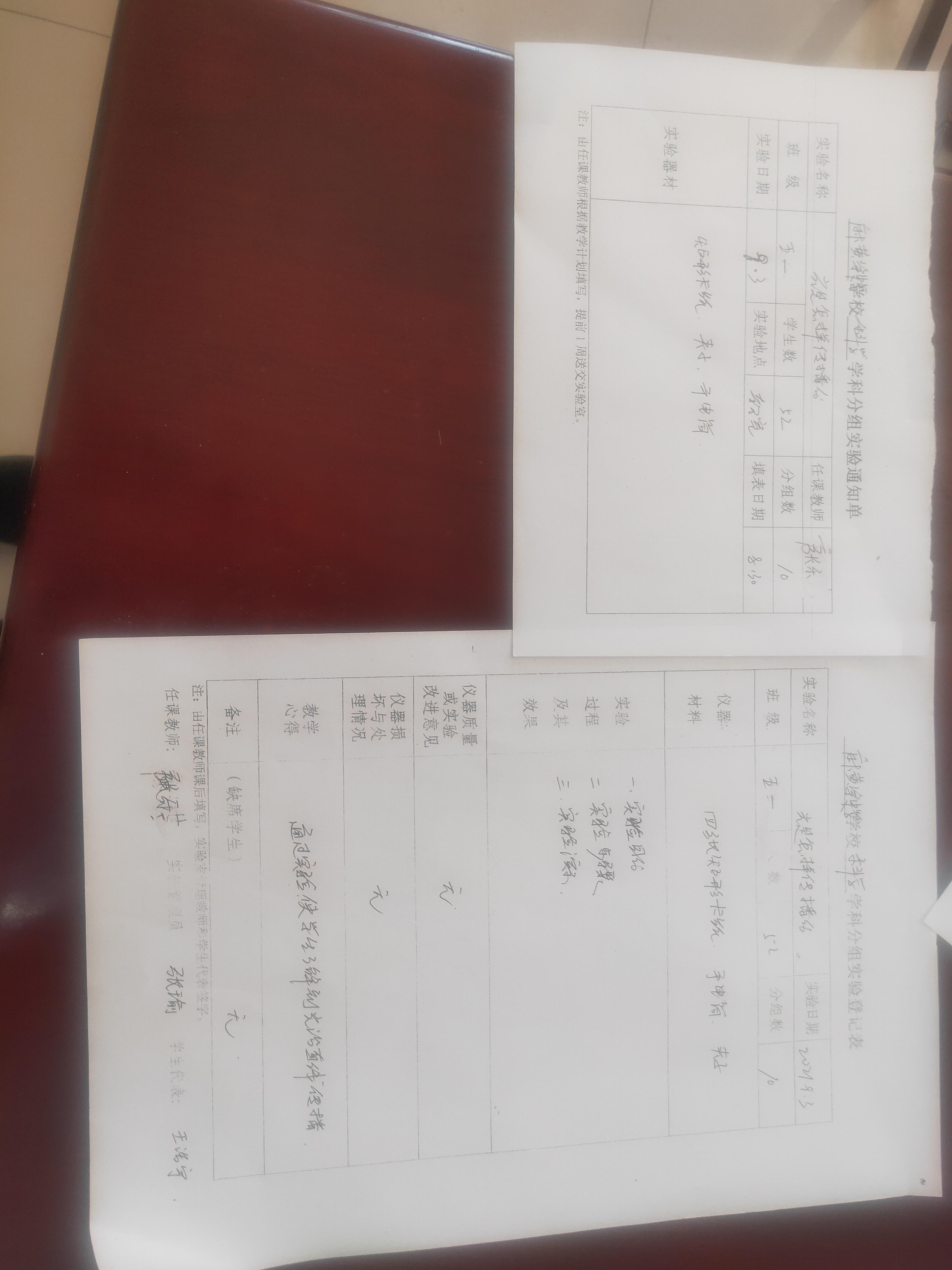 实验登记表