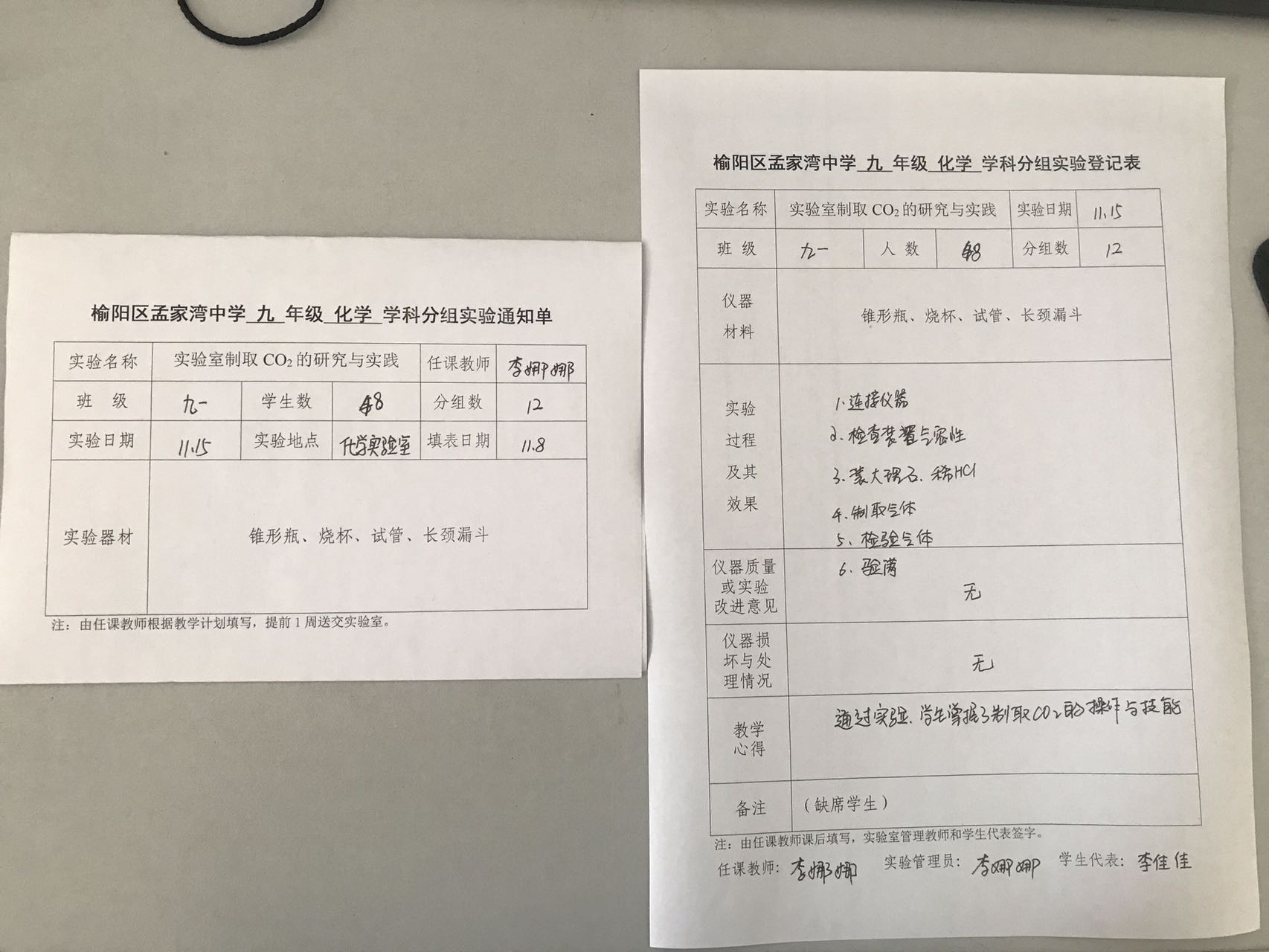 实验登记表