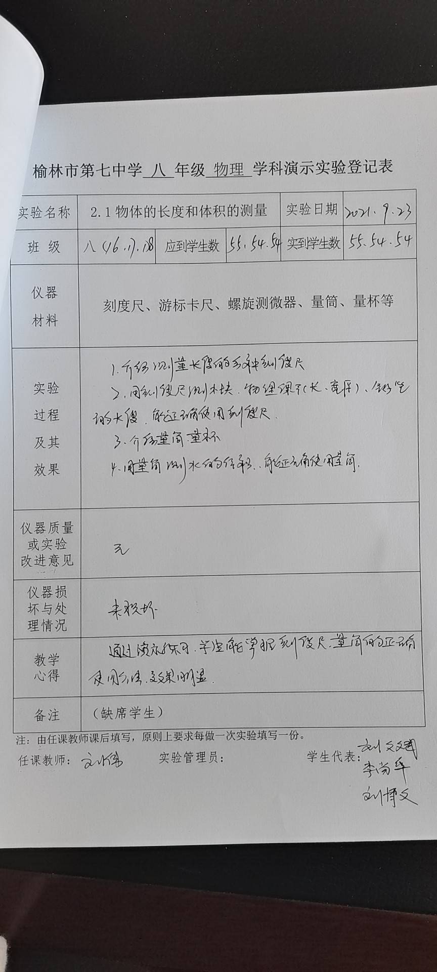 实验登记表