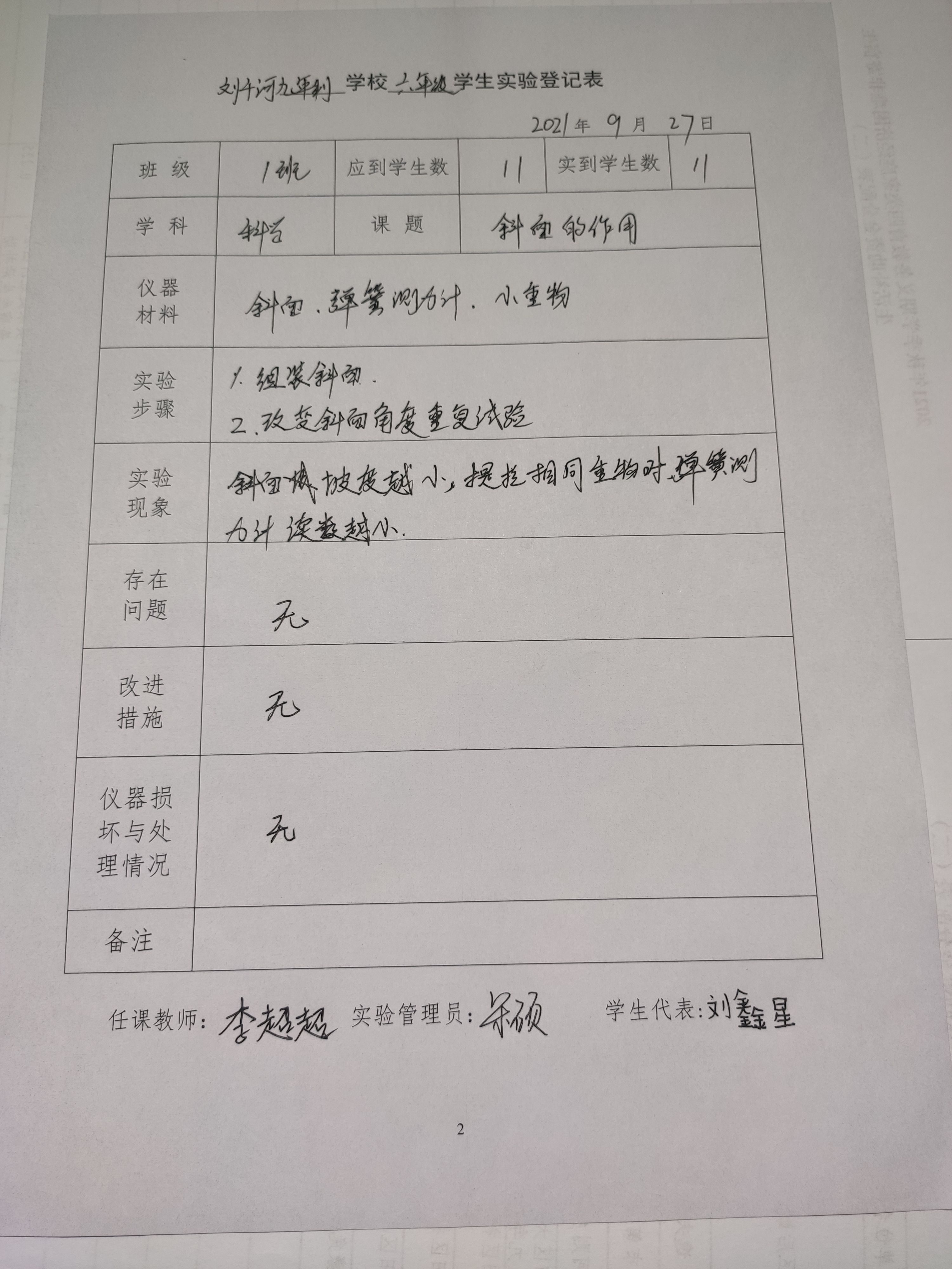 实验登记表