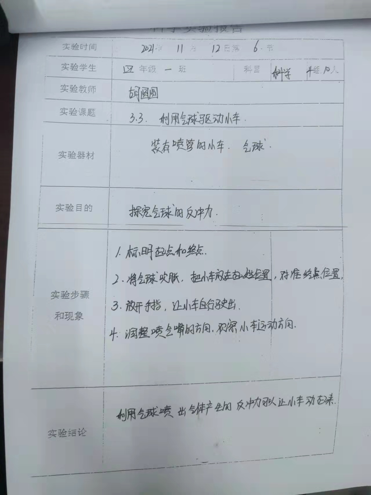 利用气球驱动小车
