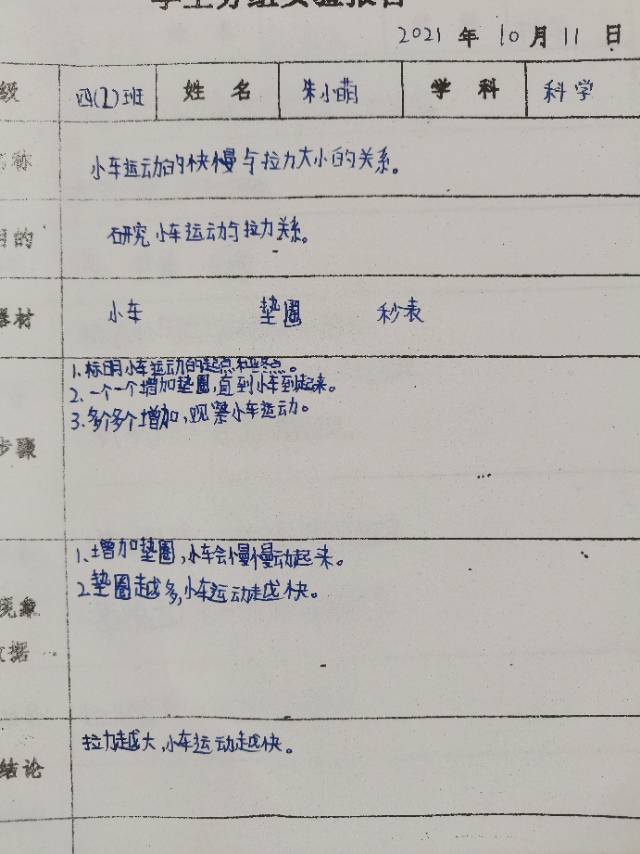 小车运动的快慢与拉力大小的关系