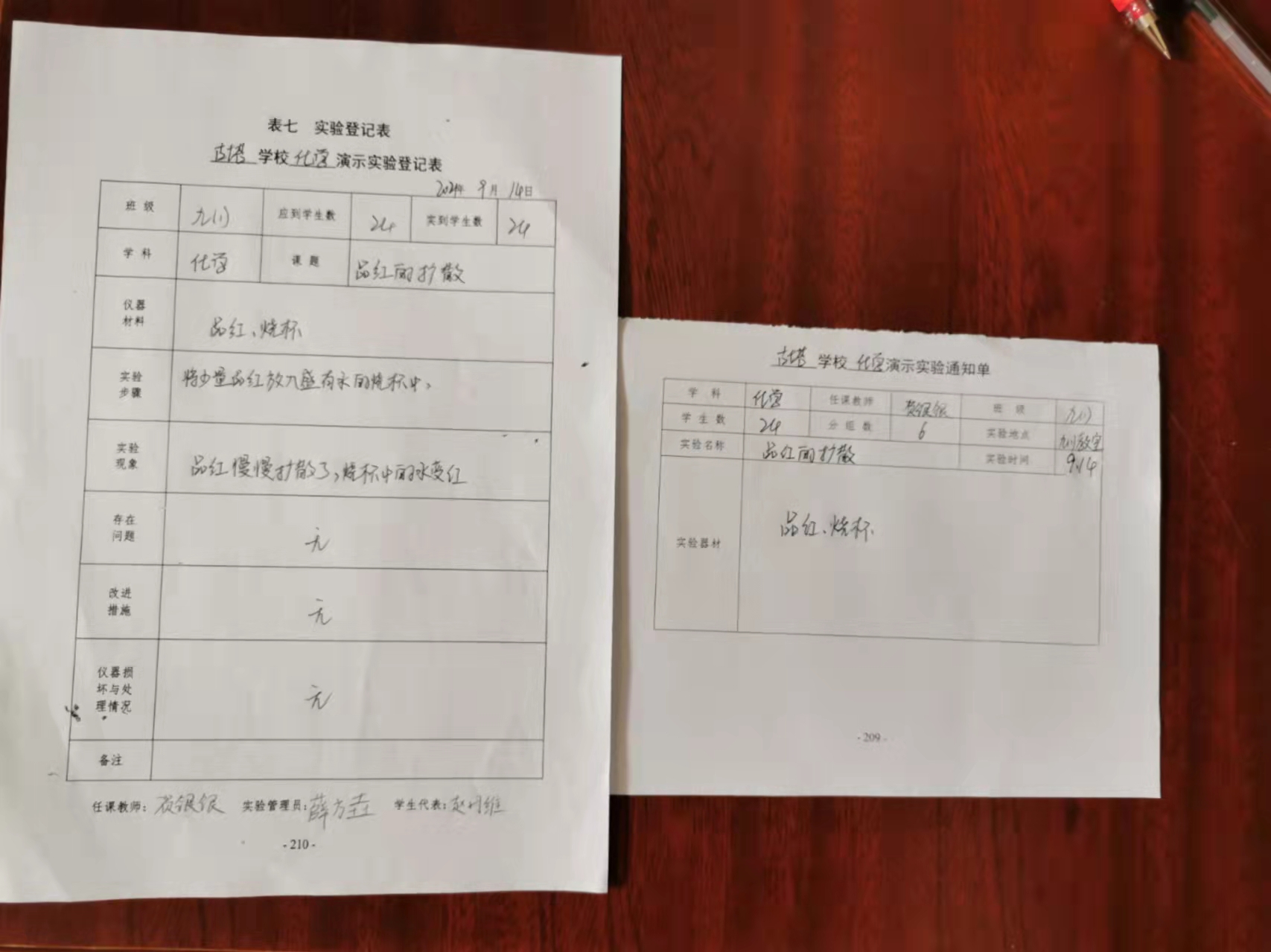 实验登记表