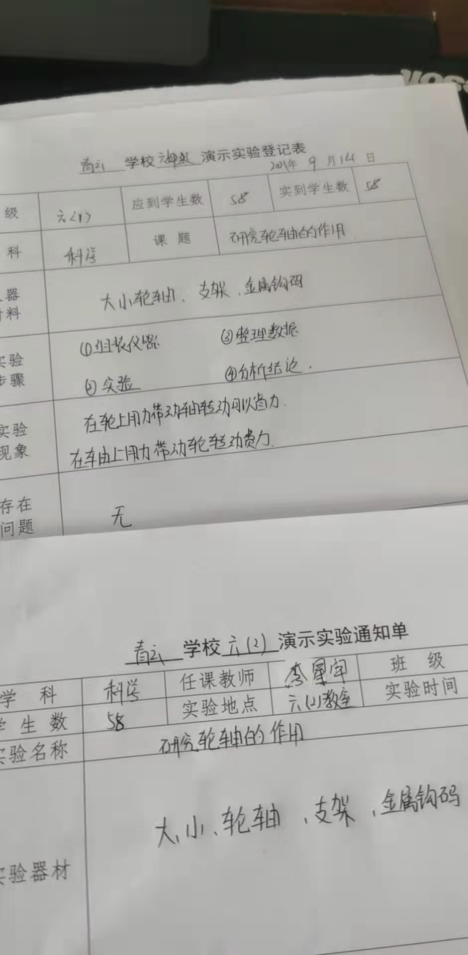实验登记表