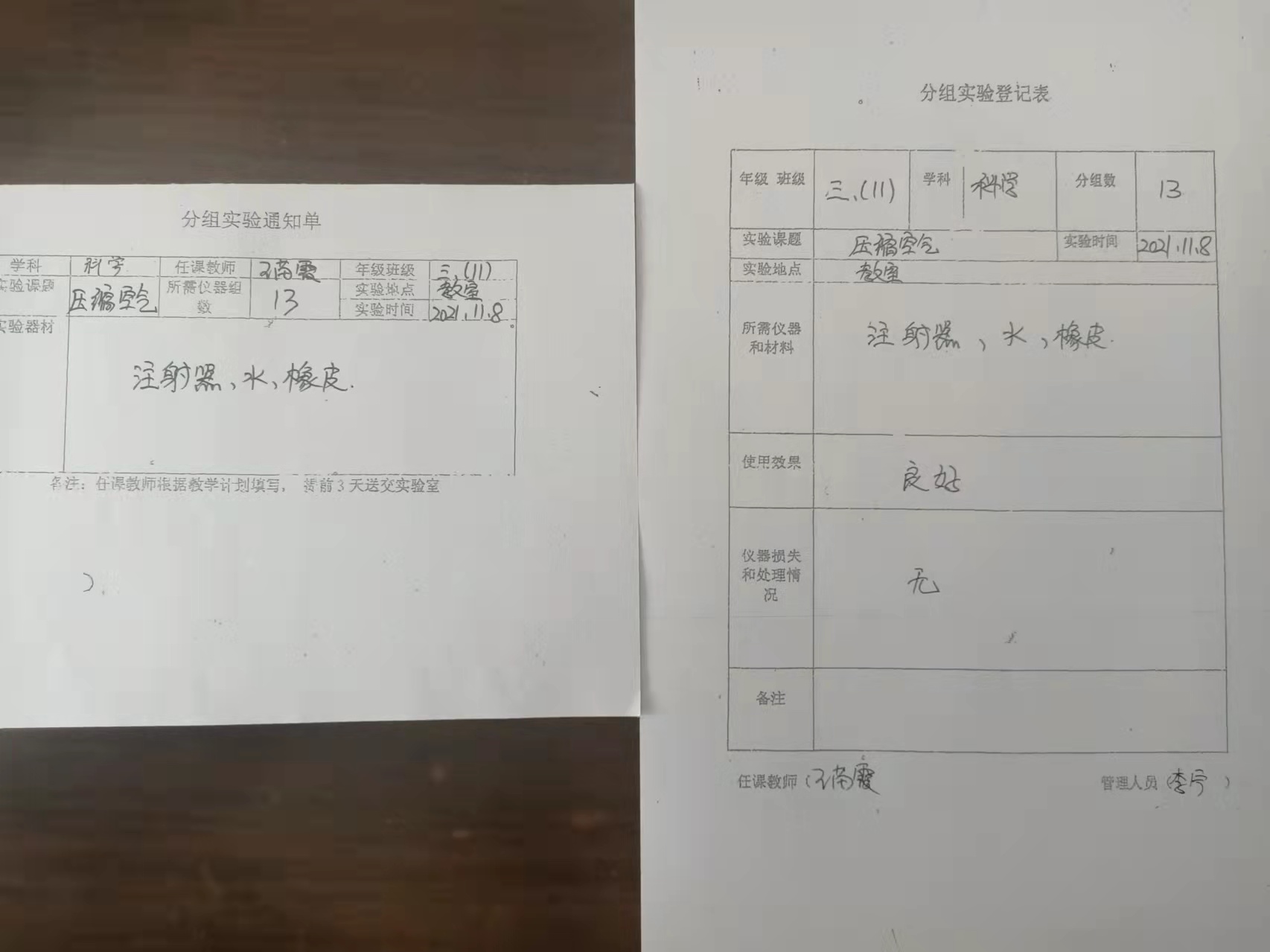 实验登记表