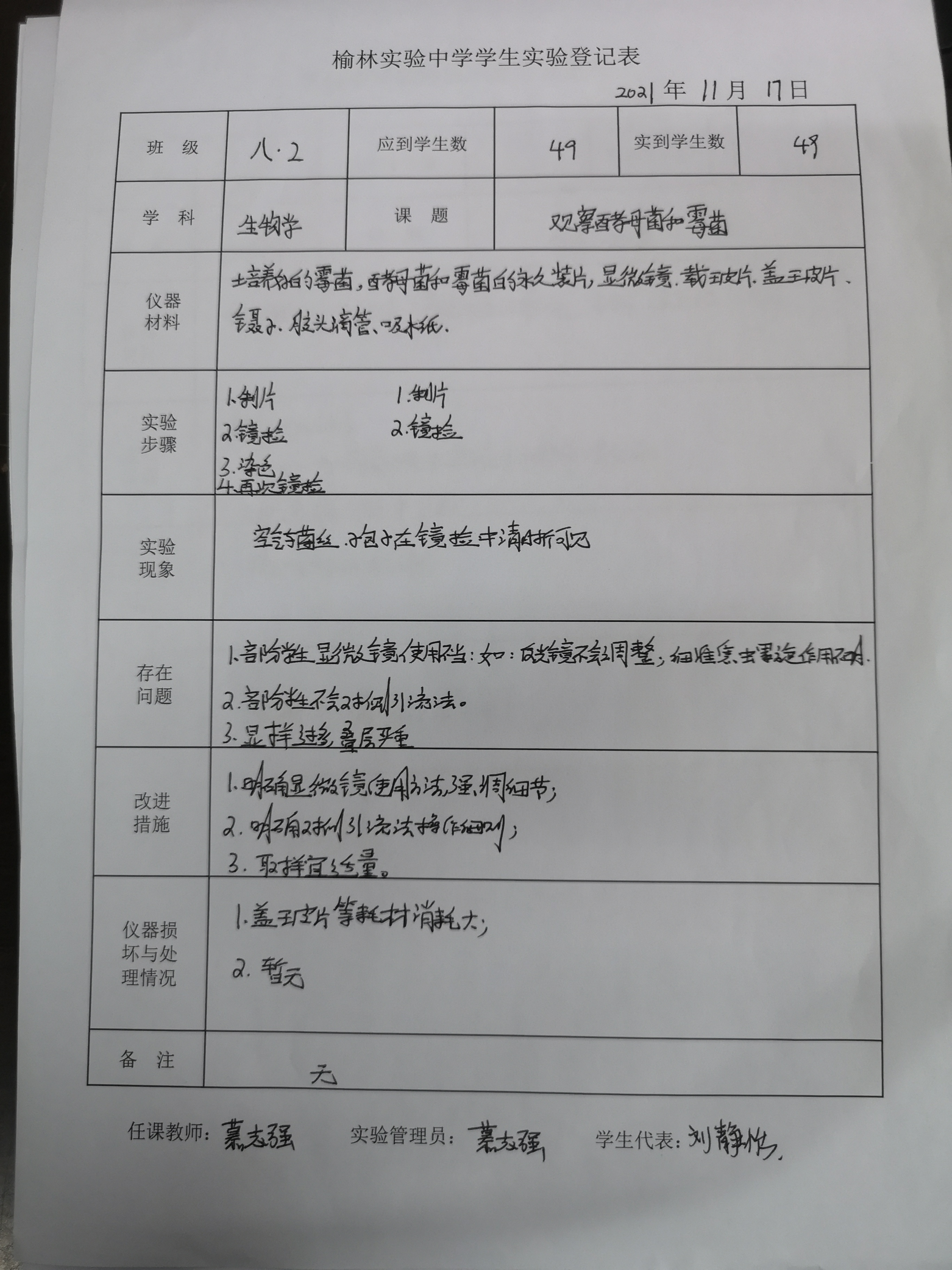 实验登记表