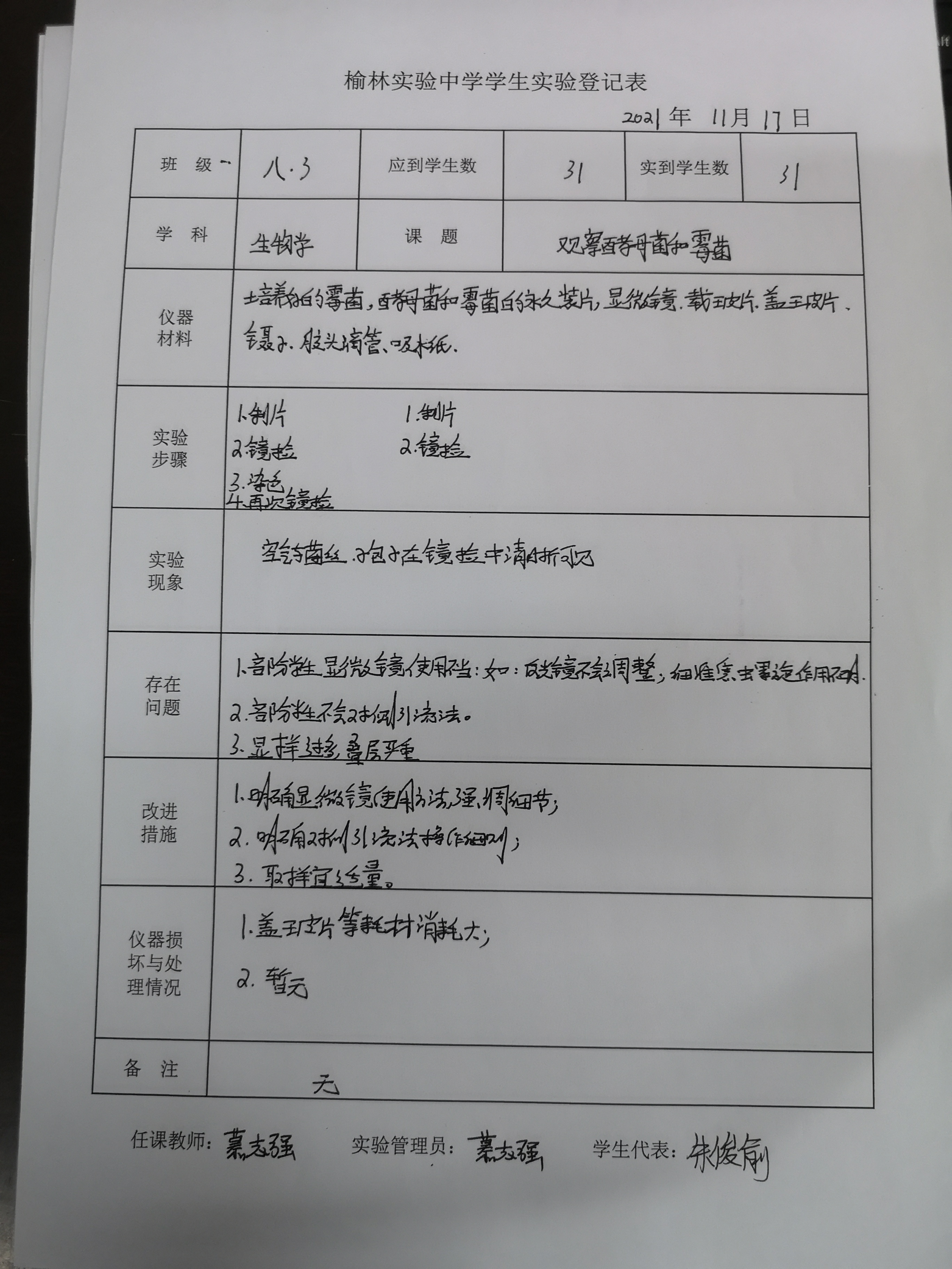 实验登记表