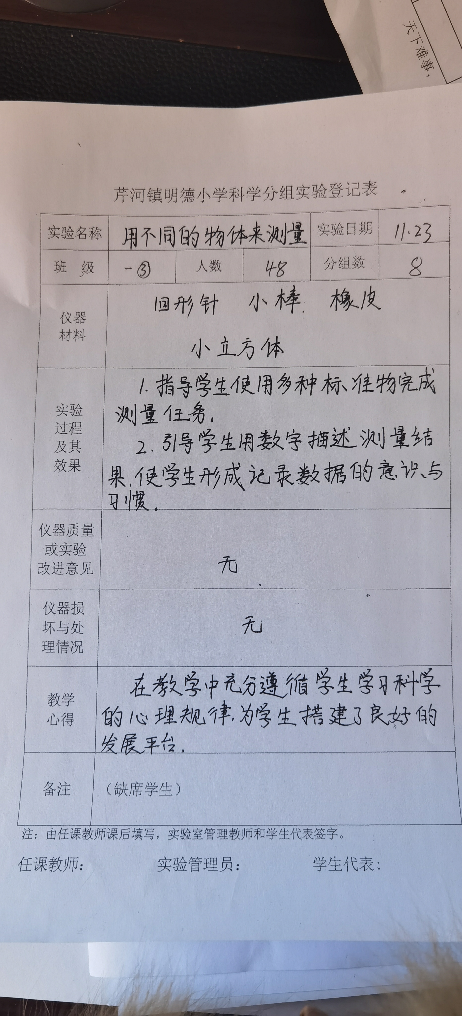 用不同的物体来测量(一年级三班)
