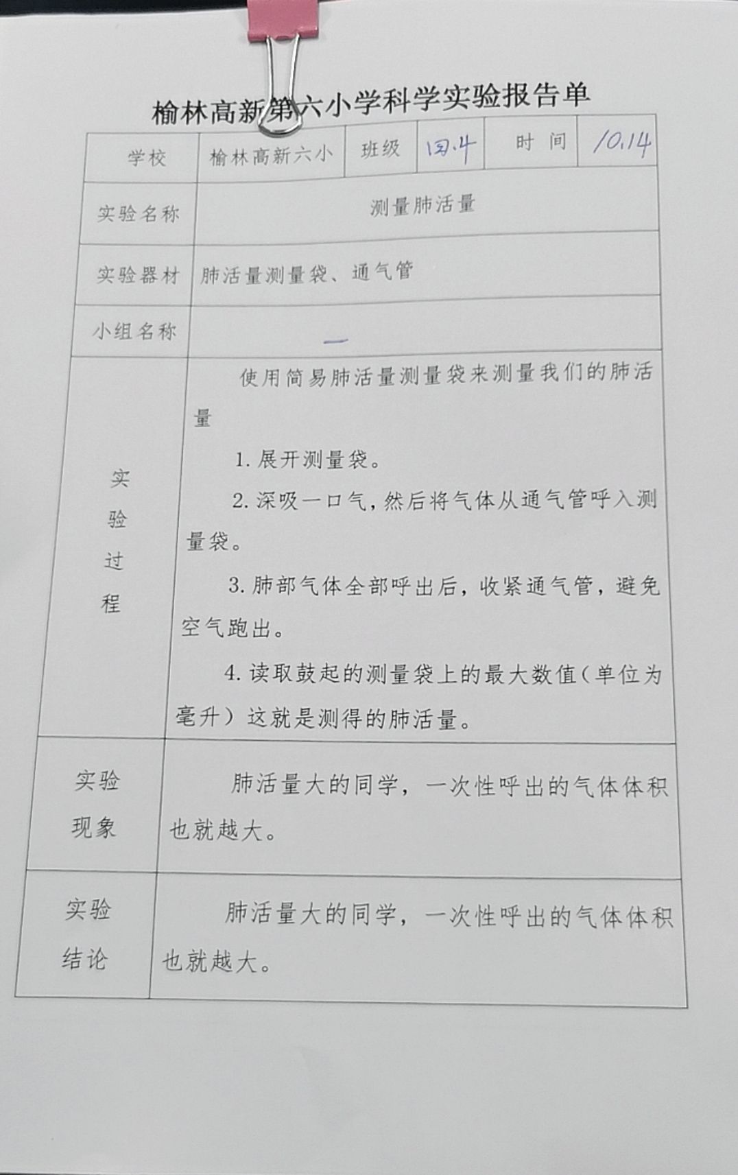 测量肺活量