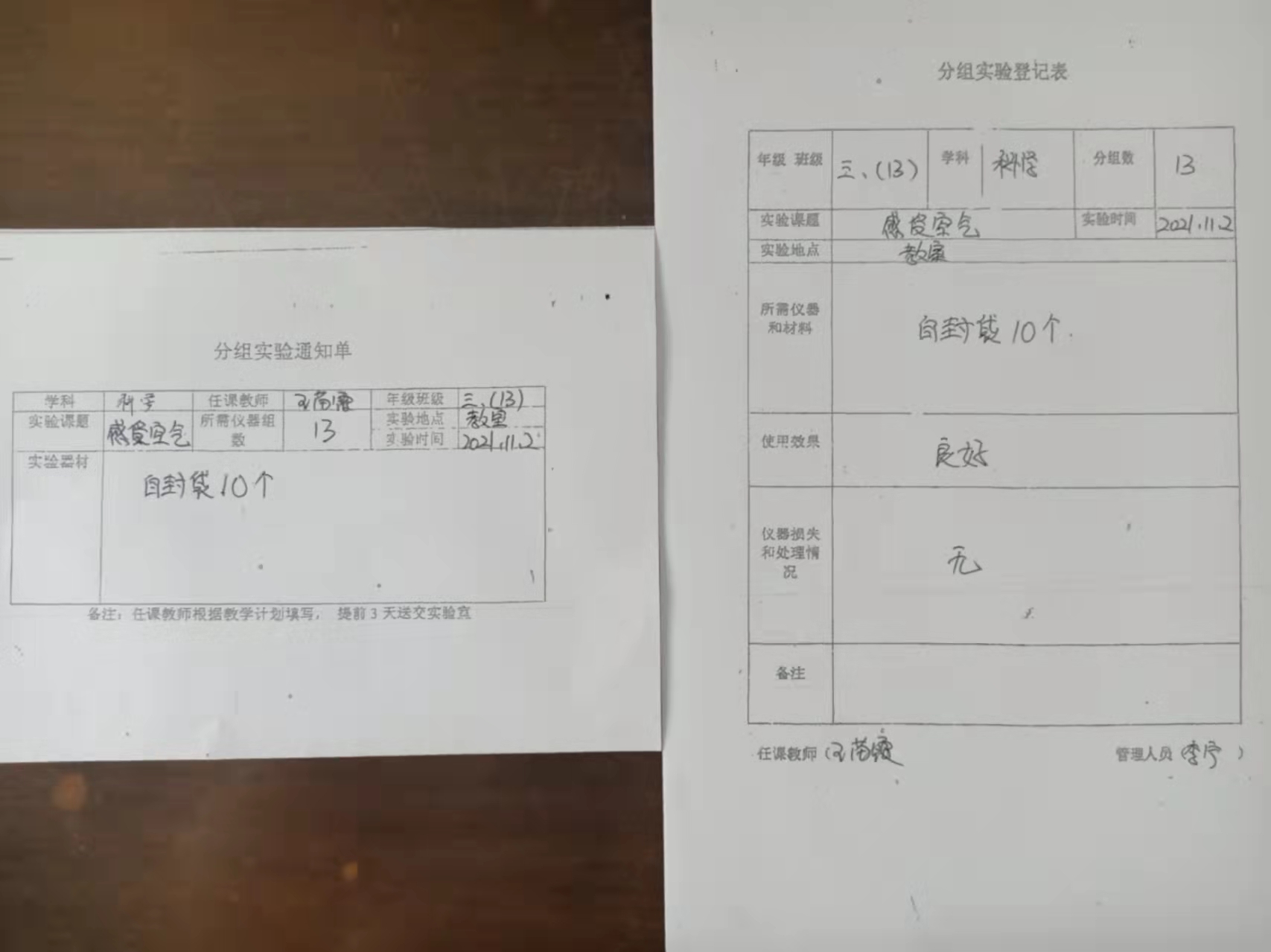 实验登记表
