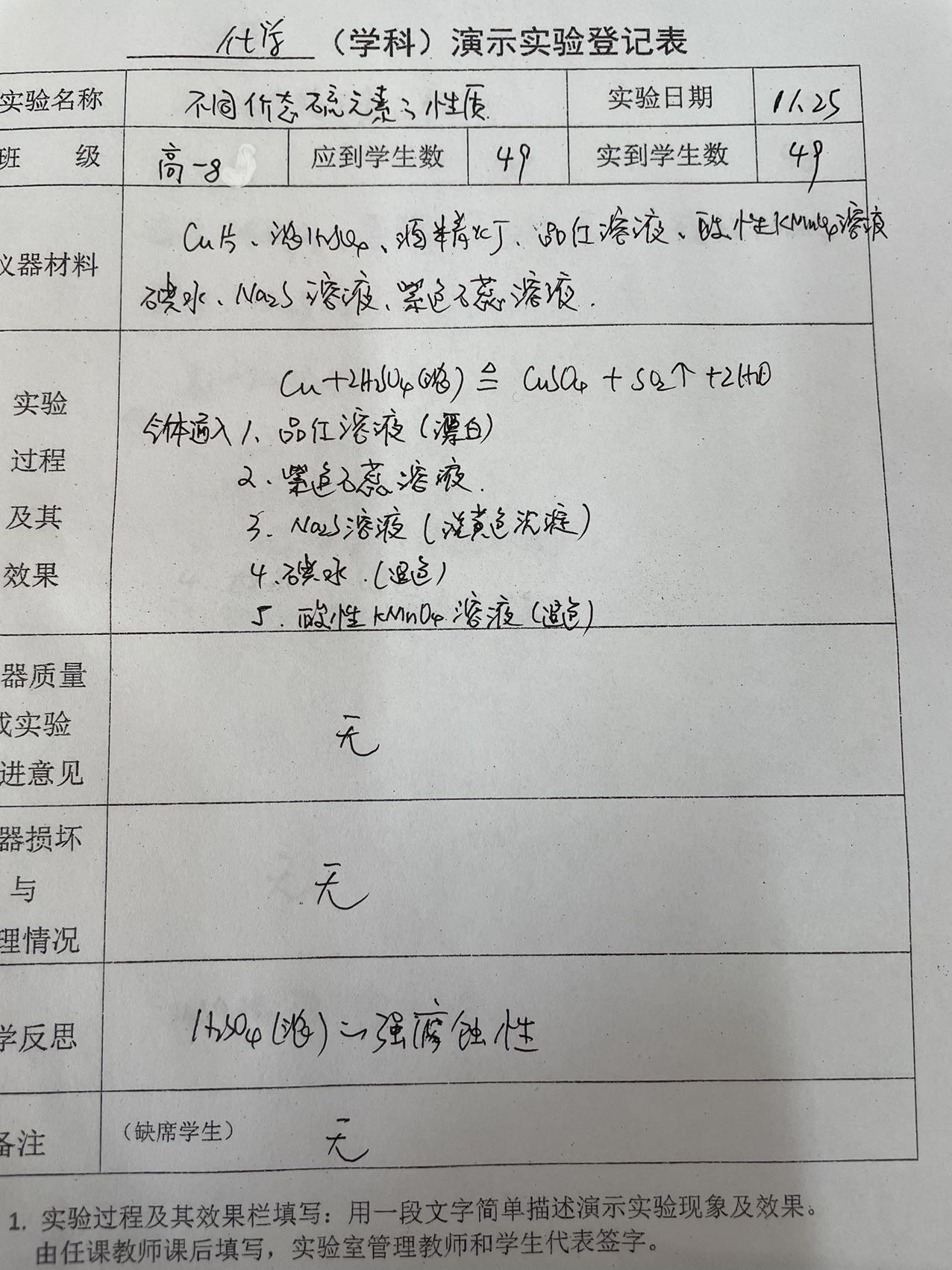 不同价态硫元素的性质