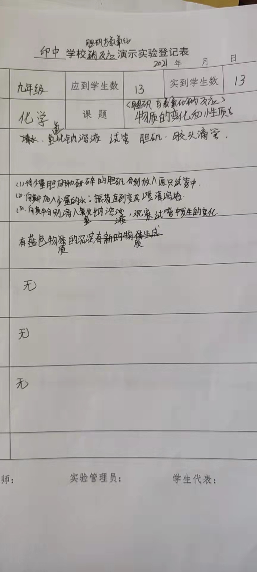 新版上册-第一单元>实验1-1>胆矾与氢氧化钠溶液的反应