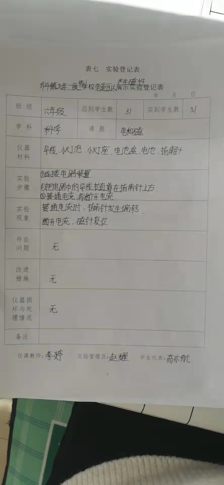 实验登记表