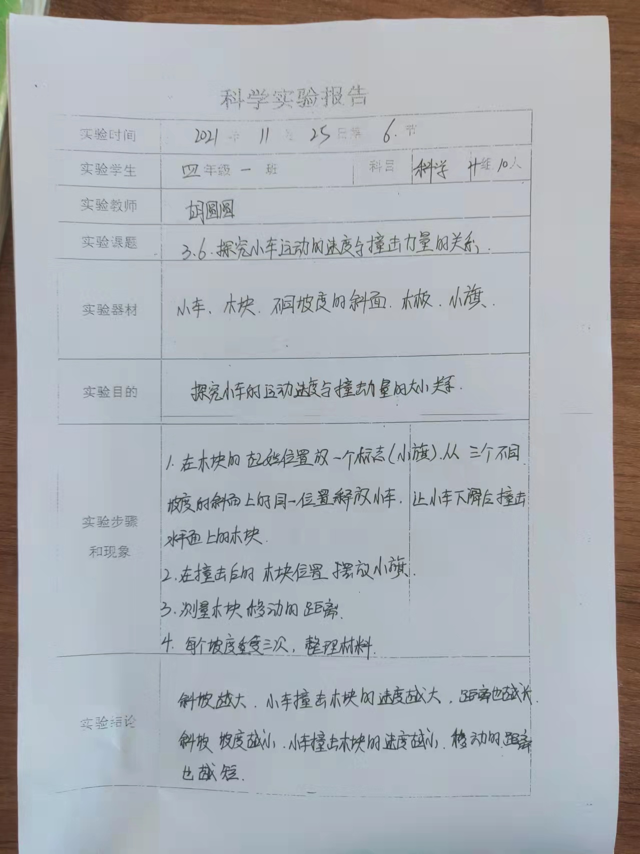 探究小车运动的速度与撞击力量的关系